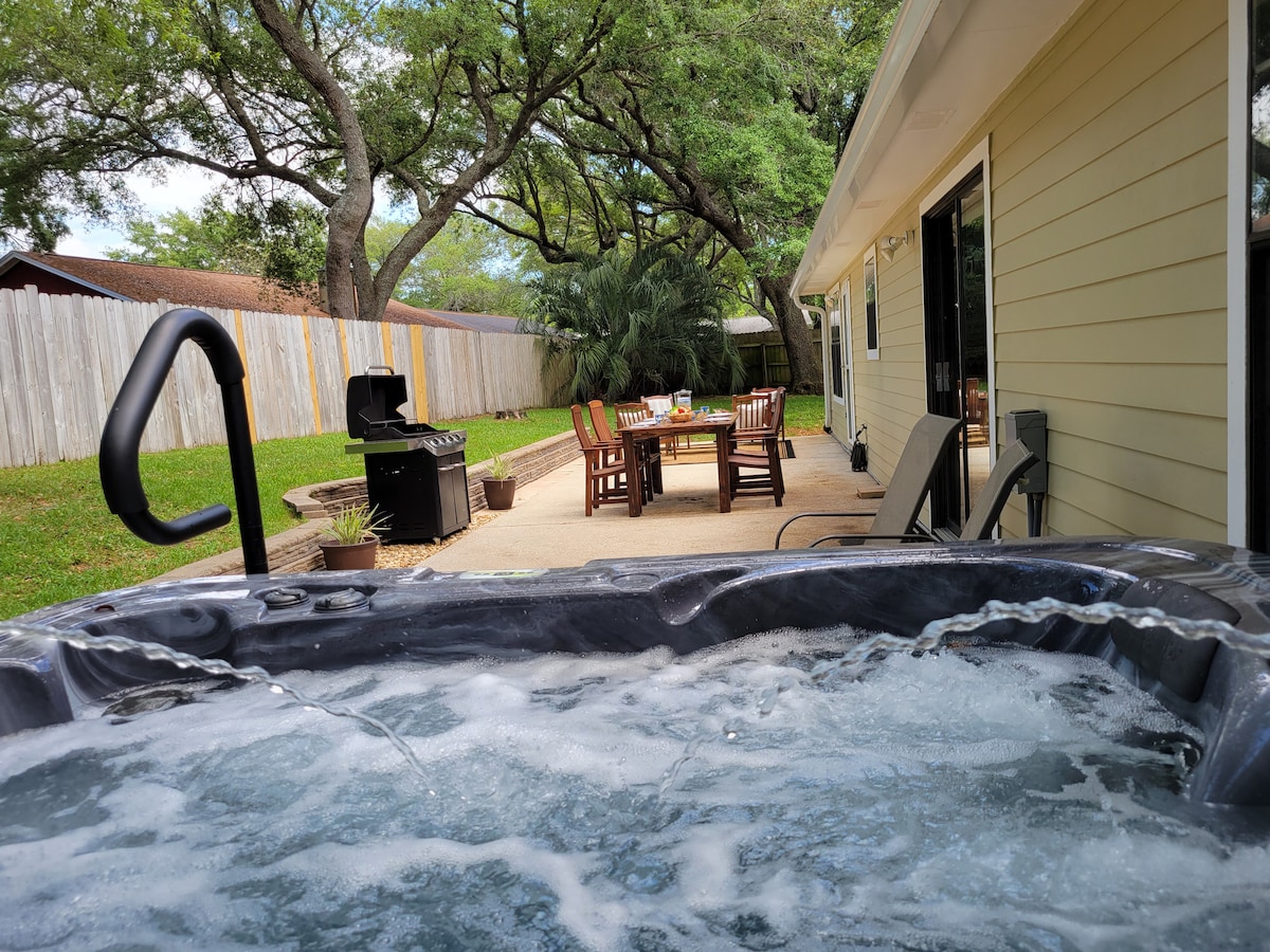 海湾微风绿洲泳池、热水浴缸、烧烤、附近海滩