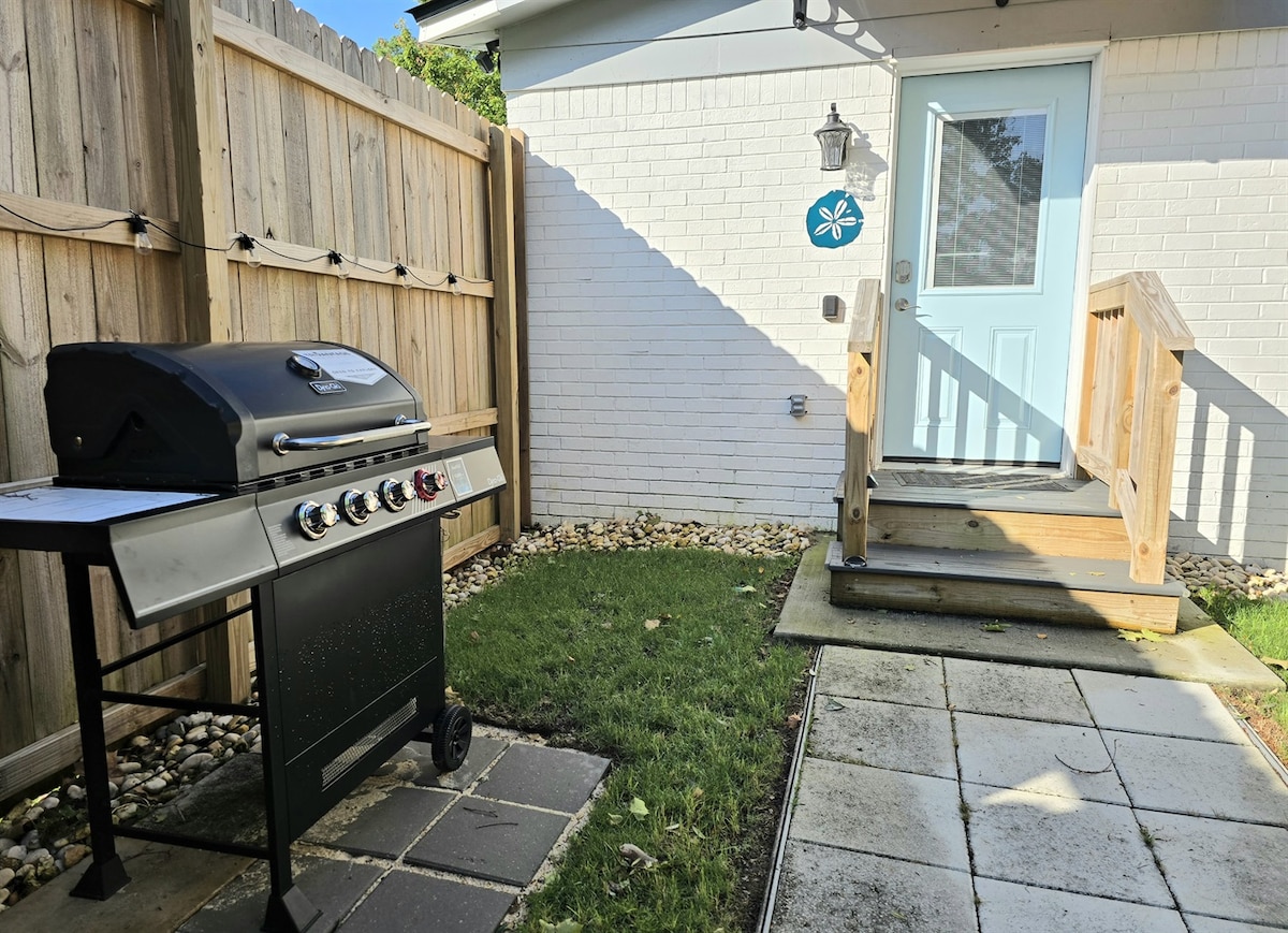 Unique & private suite for two, Pensacola Beach is 8 minutes away. Speedy wifi, fenced patio, grill, & garden. This suite includes a minisplit for air/heat & a tankless water heater. Attached to the brick house, & totally private with a privacy fence, hear the rain drops on the tin roof. Queen memory foam bed, 70" Samsung TV w/Roku, thermal blinds. Must be willing to stay regardless of rain drops on the tin roof, or lightning and torrential rain on a tin roof in a room of glass. Enjoy!