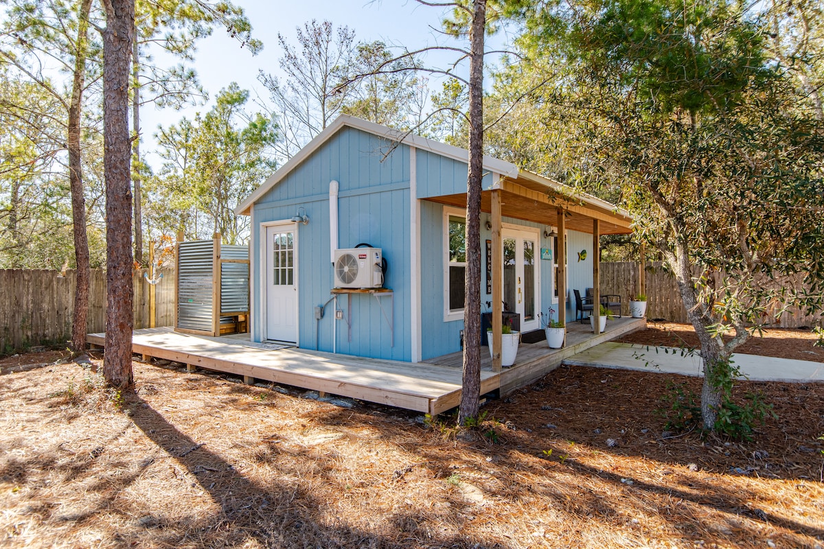 Reconnect with nature at this unforgettable escape. The “Tucked Away Tiny” is a tiny home with HUGE style! It is located in the country woods of Milton, FL on family-owned farm land, but not too far off the beaten path. Only 15 minutes to the heart of the city, and 45 minutes to beaches. It is next door to Sowell Farms which is home to several wedding venues, fenced exotic wildlife (may or may not be seen during your stay), and home of the Trophy for Great American Christmas Light Fight!