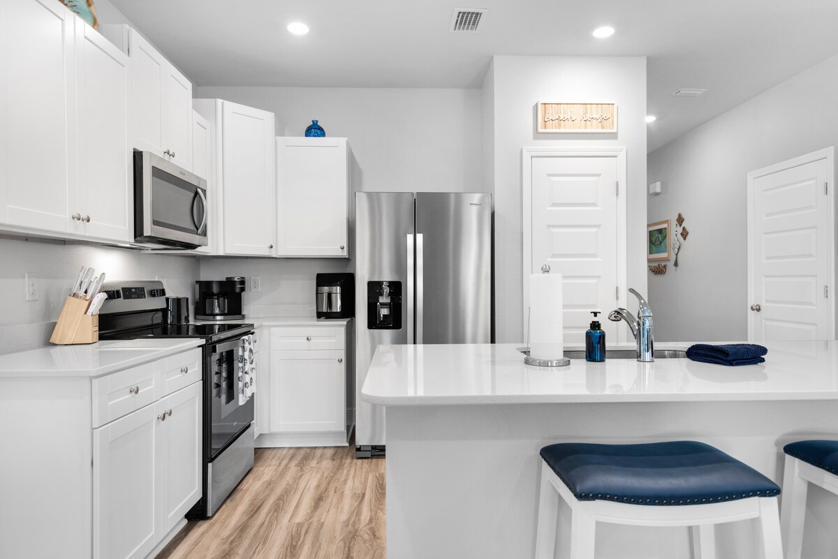 Your family will be close to everything in this modern and roomy home. Visit downtown attractions just a 5 min drive away or lounge at the pool after coming back from the beach, just 15 min away. Head out to the nearby farmers’ market and craft a meal in the fully stocked kitchen. Enjoy a drink, away from any bugs, in the screened in patio while grilling up some fish from Joe Patti’s seafood market. No matter what you choose you’ll enjoy your relaxing stay at the “Turn and Slip Inn”!