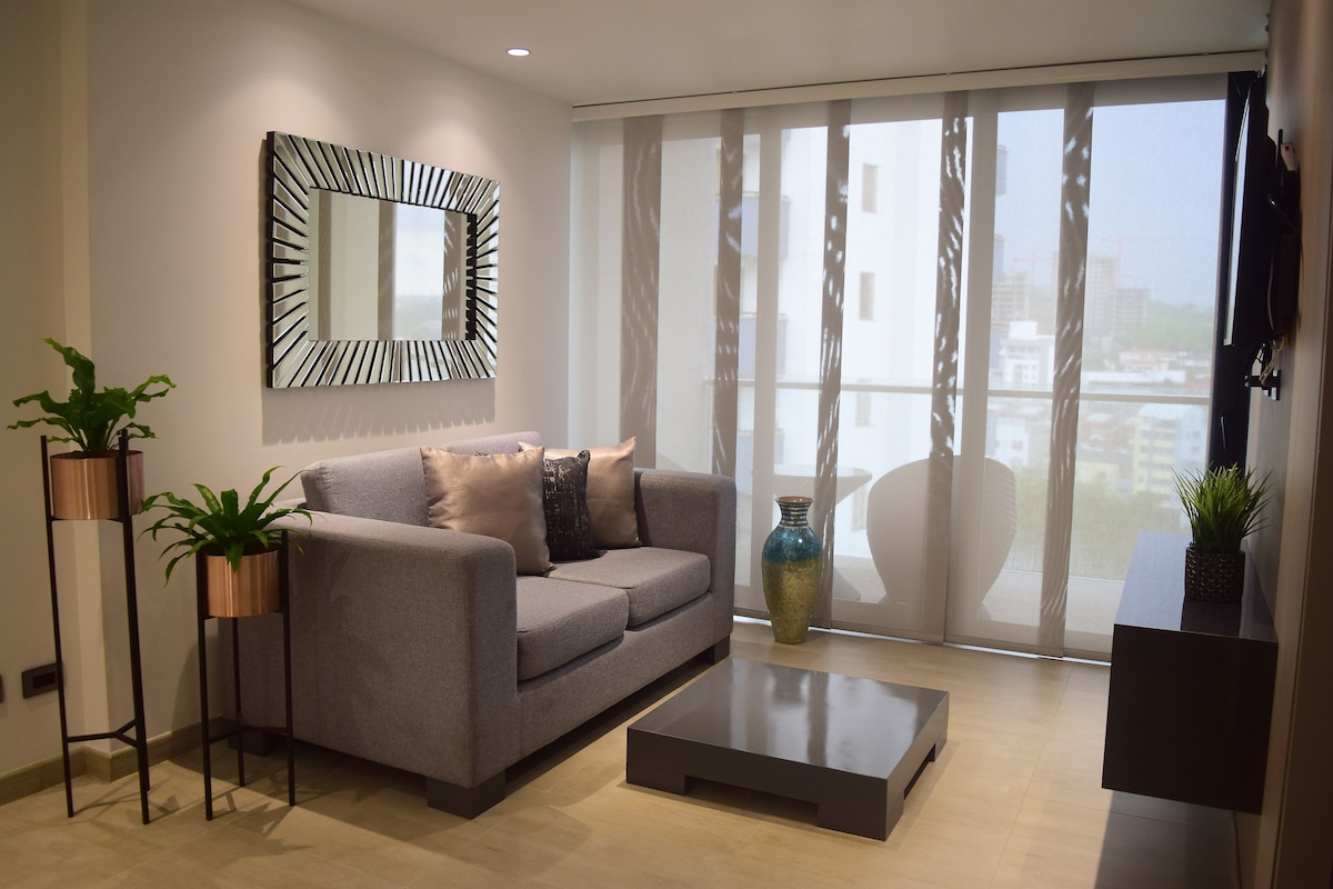 El apto te brinda total conforto, es un ambiente muy tranquilo y estiloso, cada detalle fue seleccionado cuidadosamente para darle un toque exclusivo, dispone de una cocina bien equipada, Directv pré-pago, Netflix, WiFi persianas con black-out, camas dobles con sabanas siempre limpias, toallas y todo para que te sientas en como en casa. Se prohibe cualquier tipo de fiestas ya que es indispensable mantener un ambiente tranquilo con los vecinos.