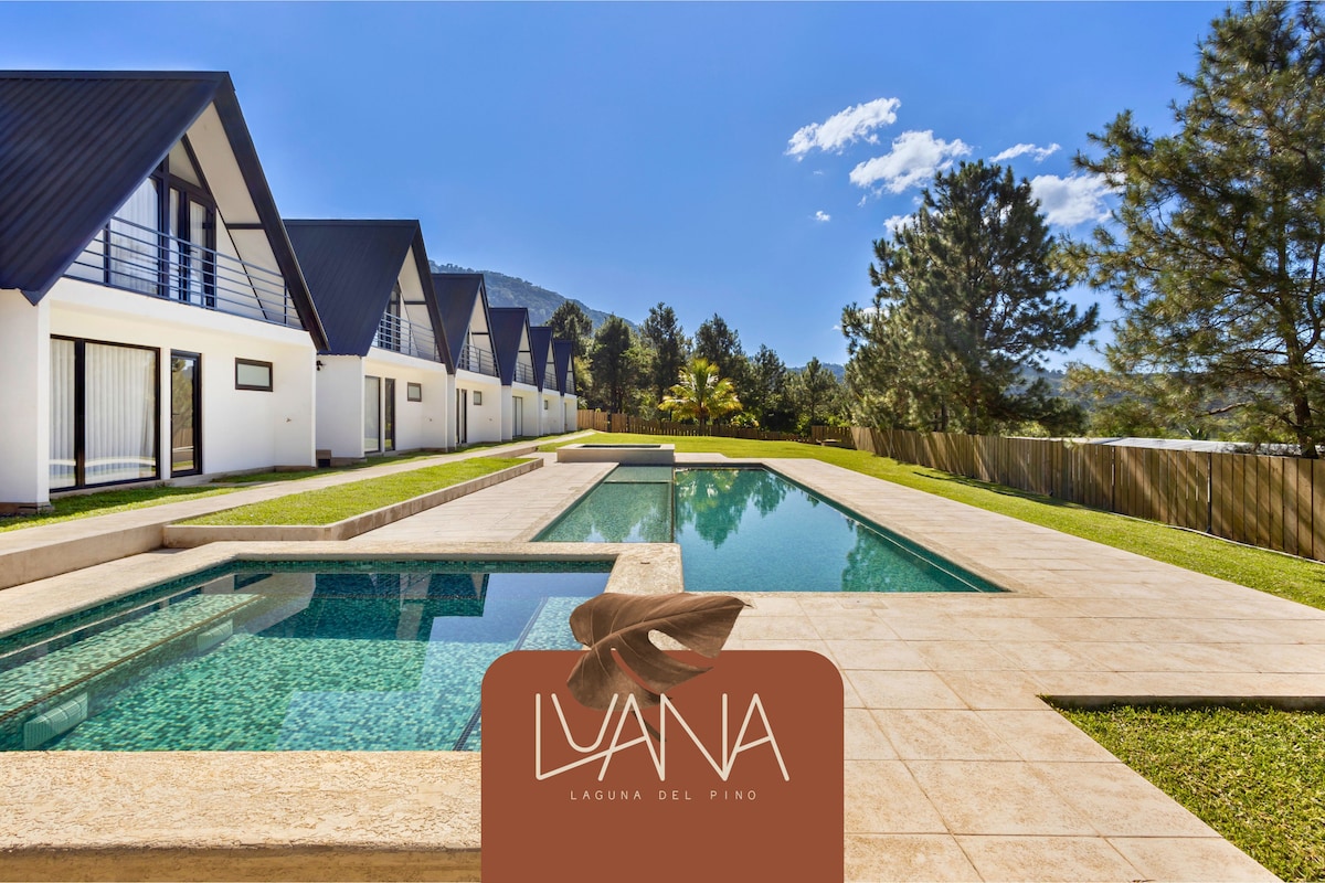 Disfruta una estadía relajante en esta acogedora cabaña del complejo Luana, a pocos pasos de la Laguna del Pino. Con capacidad para 7 personas, ofrece 2 habitaciones, 2 baños, cocina equipada y áreas sociales para compartir en familia o con amigos. Incluye acceso a piscina, jardines y club social frente a la laguna. Ideal para una escapada tranquila, a solo 1 hora desde la Ciudad de Guatemala. Perfecta para descansar y desconectarte de la rutina.