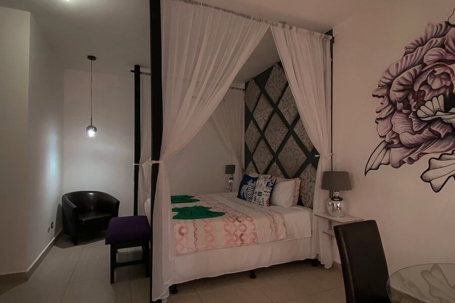 Very comfortable hotel room with breakfast included at the edge of the pool surrounded by a family atmosphere, quiet and pleasant, attended by its friendly host, and of course friendly staff, giant pool, and 30 seconds walk from the sea, private parking, WIFI from high speed, co-working space.