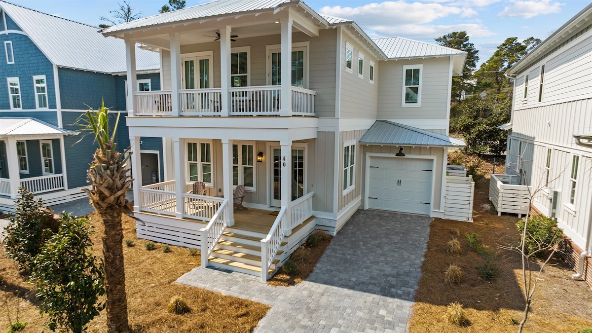 Beach House backing up to a huge state forest filled with hiking/biking trails & wildlife. Walk, bike, or take 6 seat golf cart (extra fee) to the beach or walk out the back door to an amazing coastal pine forest. Neighborhood pool access! Beautifully decorated with all amenities: outdoor living area with a fireplace and a screened in porch, a Grill, adult and kid bikes, & a 3rd floor loft. 30A villages of Grayton Beach, Seaside, Alys, & Watercolor are an easy bike ride or 5 min drive away.