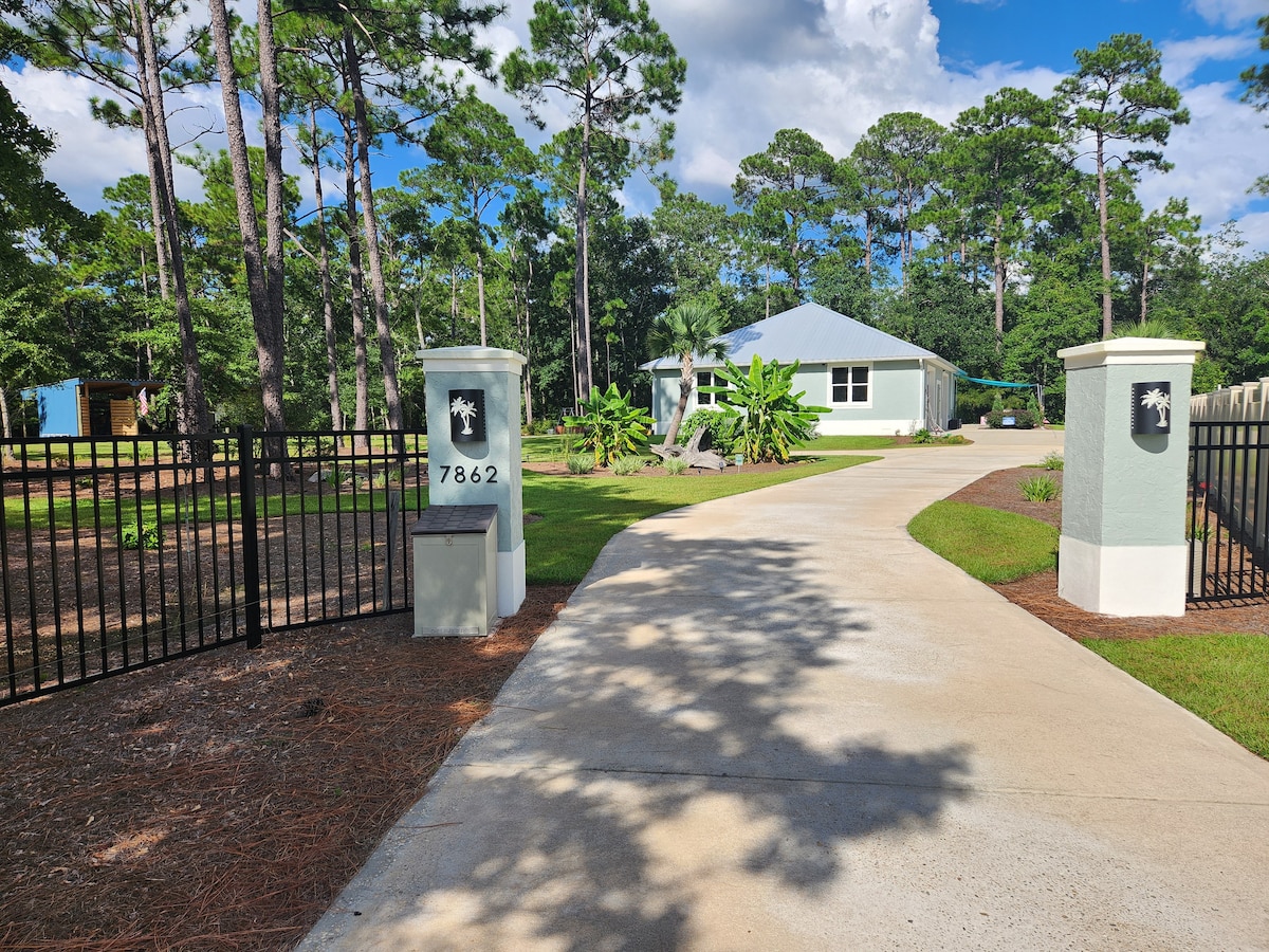 Dune Villa is located on the west end of 30-A. Our stand alone guest house has a private entrance with guest parking, full kitchen, laundry, queen size bed, bathroom and outdoor shower. Beach chairs/umbrella, beach towels, cooler, and two bicycles are provided. Just around the corner from Stinky’s Fish Camp, Santa Rosa Golf Club, Topsail State Park, Coastal Dune Lakes and Gulf Place Town Center. The perfect vacation rental for quick trips to the beach, business trips, or an extended vacation.