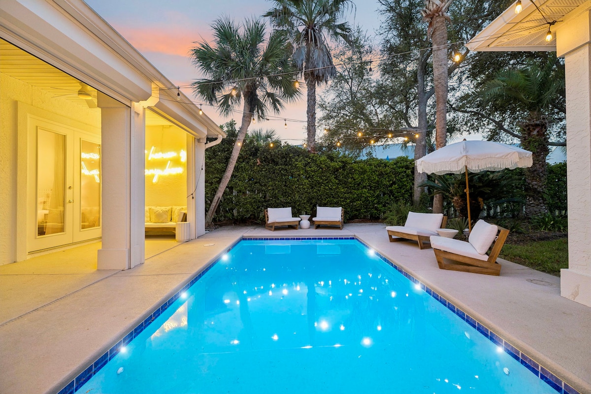 🌴 Welcome to Sweet P on Penelope! 🏡✨ One of the rare 🌟 5-bedroom gems in the highly sought-after Frangista Beach Community! Featuring a relaxing interior and a unique backyard space, our home has something for everyone - private heated pool, palm trees, a fire pit and a 100” outdoor theatre! When you're ready to explore, take the complimentary 6 person golf cart (available to guests 21 years and older) to the beach, shopping, restaurants and more.