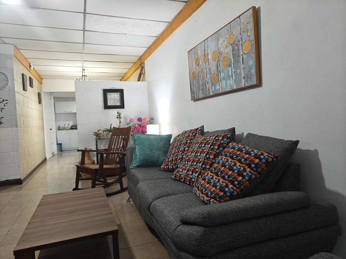 Disfruta de una experiencia con estilo en San Salvador con este alojamiento céntrico. Al realizar tu reserva, obtienes acceso inmediato a supermercados, restaurantes, el Centro Histórico, centros comerciales y hospitales. Con capacidad de hasta 4 huéspedes. Ofrecemos 2 habitaciones con un total de 3 camas (2 individuales y 1 queen), las habitaciones y sala poseen A/C; la cocina esta totalmente equipada. Contamos con parqueo gratuito, seguridad las 24H y cámara de seguridad. Internet 100MB.