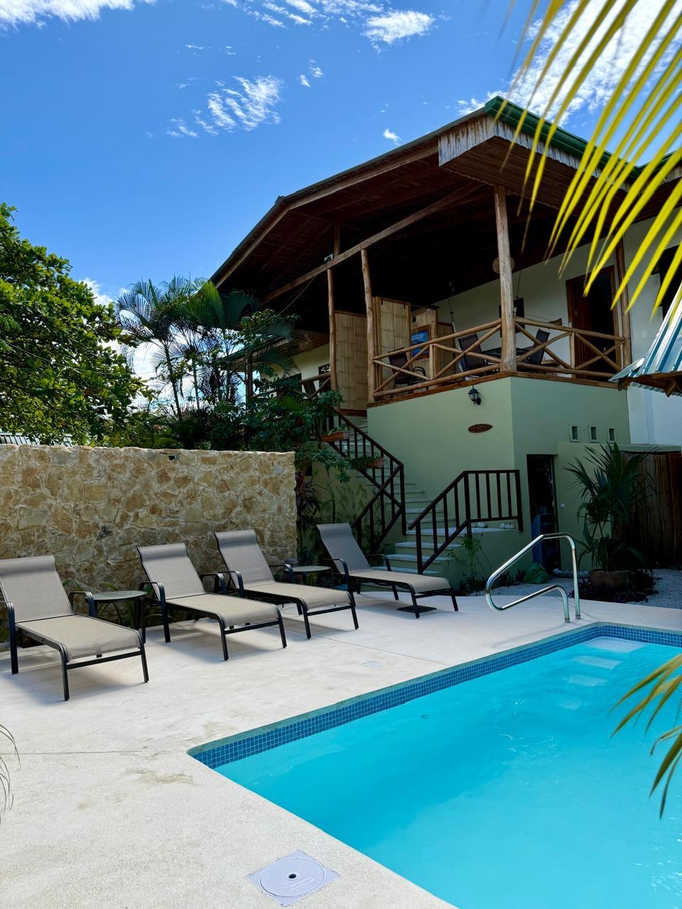 Villa Amapola is 1 of 4 villas onsite. With 2 bedrooms and a queen sized bed in one room and a queen and single bed in the other, it sleeps up to 5 comfy. Full kitchen, living room, tv, ac, wifi, balcony and back deck with hammock and beautiful view. Just a few min walk to the best surf. We have 2 internet service providers on the property with 200 mgs of wifi each, all routers backed up with batteries for potential outages. We are pet friendly and offer laundry service for a fee