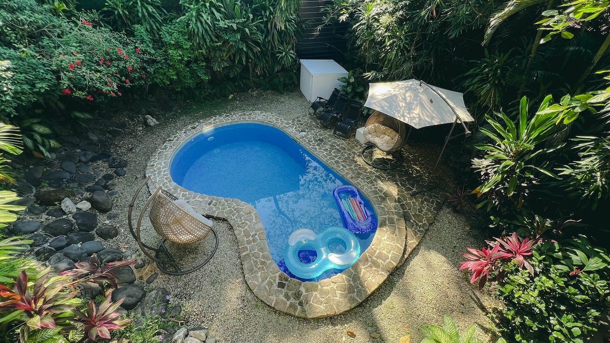 Just MINUTES’ WALK to the BEACHE of Malpais, and only 700m from Santa Teresa’s crossroad, our peaceful escape is perfectly balanced with a lively town vibe. This modern home sits in a lush retreat community with 24h security and a gorgeous shared pool near by restaurants, banks, and shops. The stylish studio features flexible sleeping, exquisite kitchen, cozy living area, and outdoor deck with a superb BBQ grill. Off the main road for peaceful quiet, warmly hosted and loved by guests.