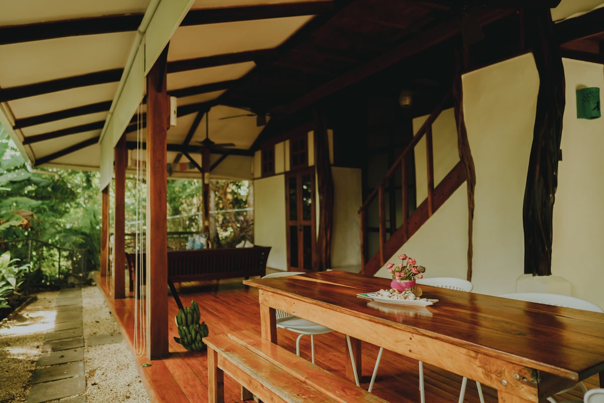 Perfectly situated where the lively streets of Santa Teresa give way to the verdant residential area of Malpaís, this 2-bedroom bungalow, fully fenced-off for privacy, is an ideal home base for your adventures in the area. With two air-conditioned bedrooms, a fully-equipped kitchen, and generous outdoor living space, you can live well for a weekend, a week, or more. Highspeed internet and all utilities are included. The property is located on the main road, a short 4 minute walk to the beach.