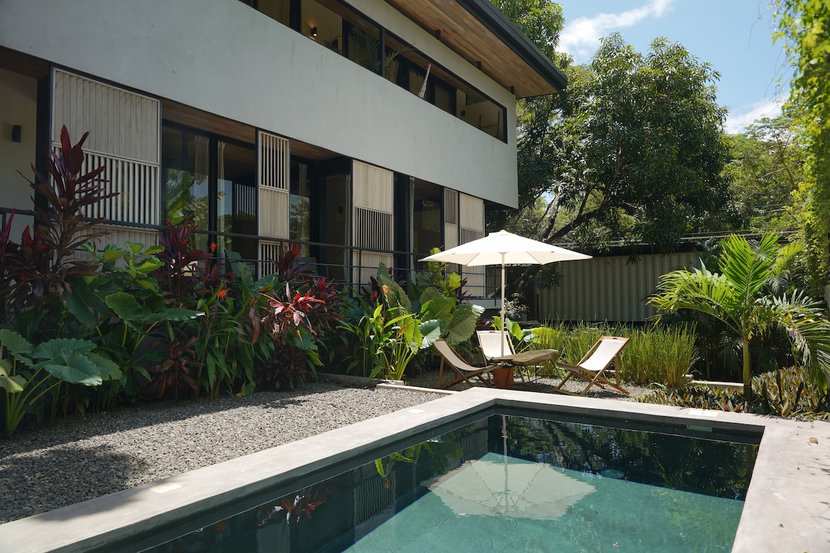 Renovated in August 2023, Modern Casita is the ultimate retreat for couples and travelers. Immerse yourself in the lush jungle, wake up to the sound of howler monkeys, and enjoy early morning walks to Playa Hermosa—perfect for surfers of all levels and those seeking a relaxed vibe. Peaceful nature surrounds you. Just steps from the beach and a 3-minute drive to the supermarket, this chill, green area is also just 7 minutes from the lively Santa Teresa. ;)