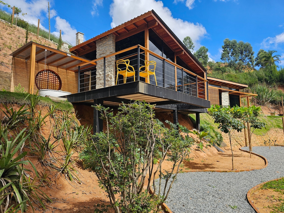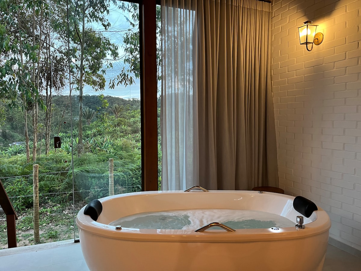 ✨ Refúgio nas montanhas a 8km Santa Teresa e jacuzzi com vista para montanha 🏞️ O Meu Chalé tem 2 quartos com colchões magnéticos que fazem massagem 💦, mezanino, sala com sofá-cama, e é totalmente climatizado. Com cozinha completa, estacionamento e tomadas inteligentes 🔌, tudo foi pensado para o seu conforto. A apenas 8 km de Santa Teresa, você vai se conectar com a natureza 🌿 e desfrutar de uma vista panorâmica 🌄. Uma experiência inesquecível em um espaço único! 🌟