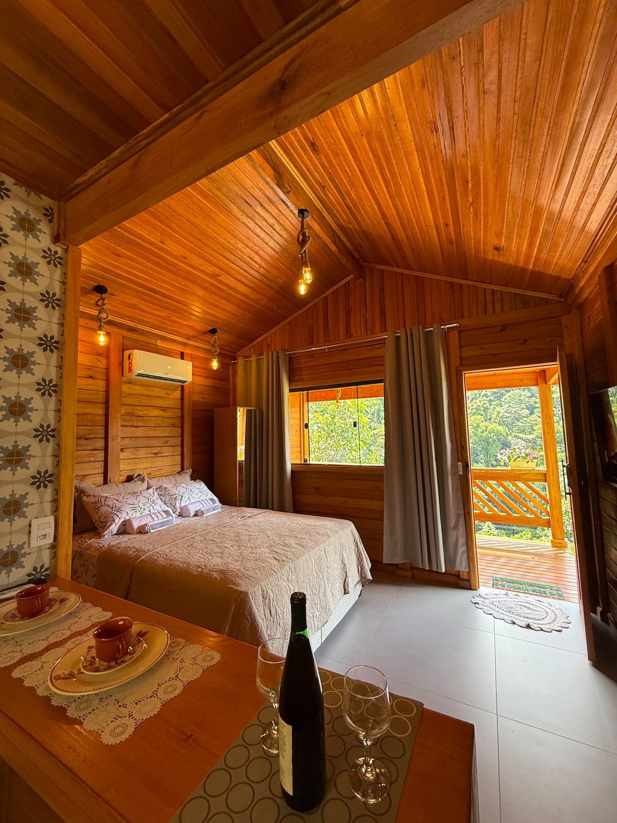 Cabana Toscana é um refúgio romântico em meio à natureza, com arquitetura moderna e ambiente sofisticado. Totalmente equipada, oferece cozinha completa para jantares especiais, conforto, privacidade e atmosfera acolhedora. Ideal para casais que desejam desacelerar e viver momentos inesquecíveis. A poucos minutos do centro de Santa Teresa, une exclusividade, charme e praticidade. Reserve e viva essa experiência única.