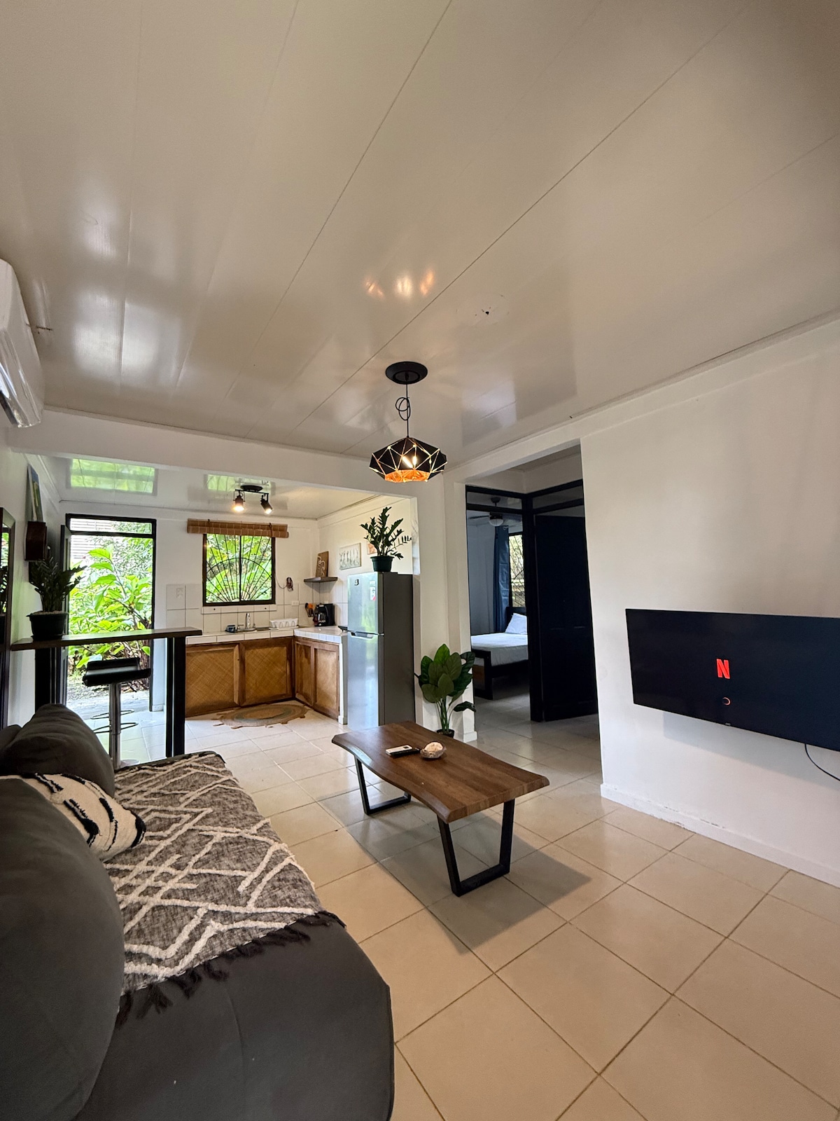 Villa Sereno is a beautiful cozy casita nestled in the heart of Santa Teresa North which offers a fully equipped kitchen, a spacious bedroom with king size bed and a shady ample terrace with dining table and lounge sofà. The place has a very comfortable and friendly atmosphere offering a unique experience to our guests. Settled in a lush tropical garden the villa is also only steps away from the beach access and services like markets, restaurants, cafes, shops, yoga/pilates studios, ATM, etc.
