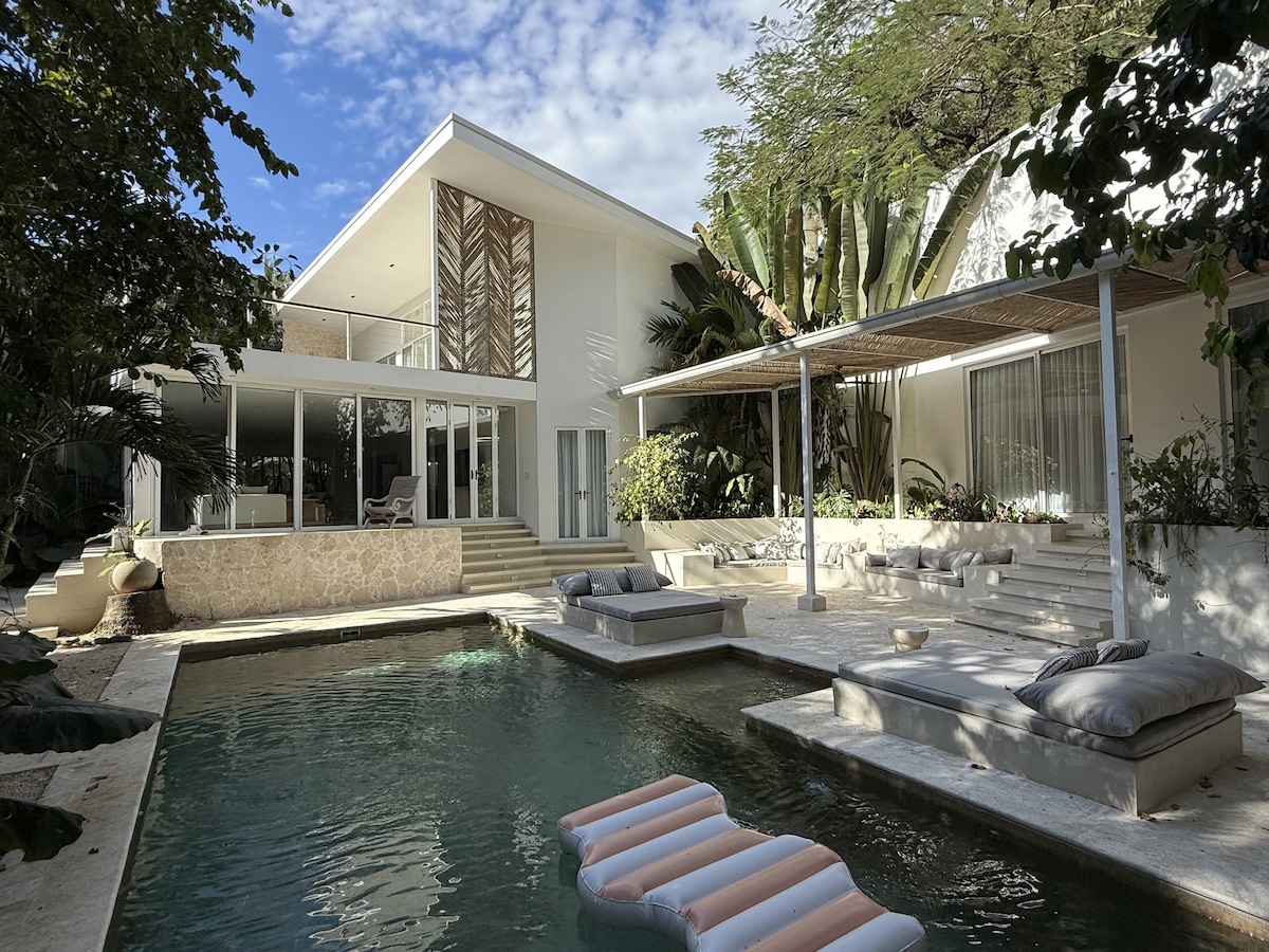 This jungle house is designed for a calm and comfortable stay, surrounded by nature. Built elevated, it features clean and contemporary architecture with natural materials, open spaces, and a strong indoor–outdoor connection. The bright living area includes an office space with large windows and a Pilates studio that opens into the living and dining areas. Ideal for guests who value nature, privacy, serene spaces, and thoughtful design. Very close to the beach and town, yet quiet and peaceful.