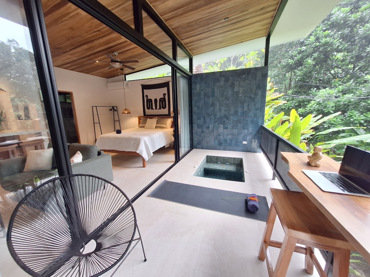 宁静的丛林景观单间公寓,带私人按摩浴缸