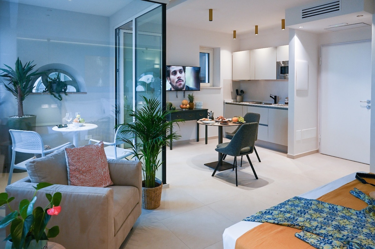 Located just 100 meters from the main street, secluded yet accessible by car, this tranquil retreat is perfect for families and couples. The bedroom features a comfortable queen-size bed, while the living room offers a double sofa bed for 3 or 4 guests. The open-plan kitchen allows you to prepare your meals while enjoying a wide view of the dining area. An excellent choice for a pleasant vacation in Taormina!