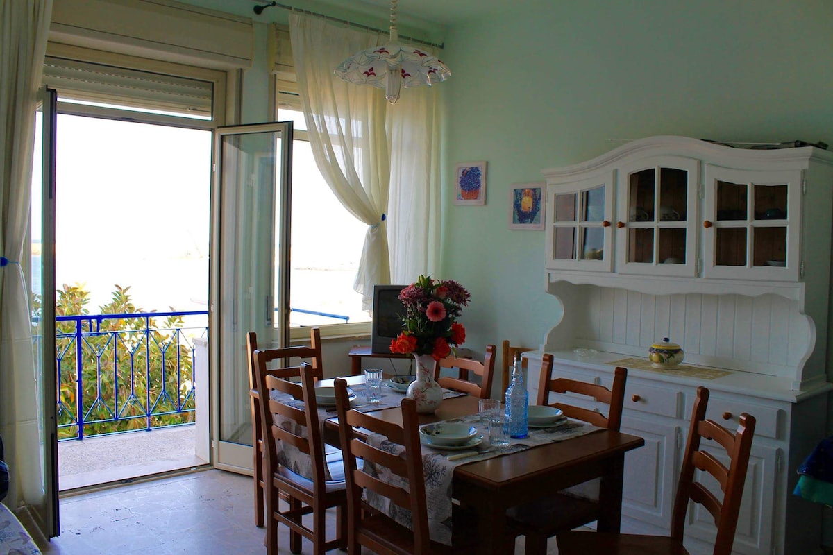 Bellissimo Appartamento di 90 mq., fronte mare , con due camere da letto ( 4 posti) più due integrabili . Bagno , cucina ed ampio salone e balcone panoramico Beautiful apartment of 90 square meters, facing the sea, with two bedrooms (sleeps 4) plus two that can be integrated. Bathroom, kitchen and large living room and panoramic balcony