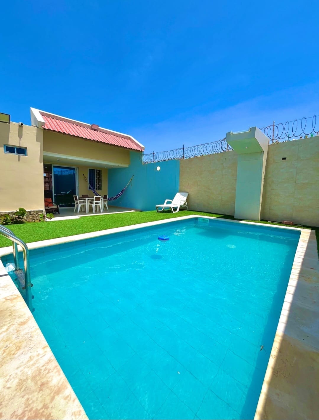 This comfortable villa is located on the outskirts of Juan de Acosta. The villa has two bedrooms with air conditioners, five beds, equipped kitchen, swimming pool, and barbecue area. We admit a minimum of two guests, if you want to rent the property alone, you need to pay the first night double. Text us before making your reservation if you want to know more about this. For stays longer than 3 nights, it’s necessary that the maintenance person enters the property in order to water the garden.