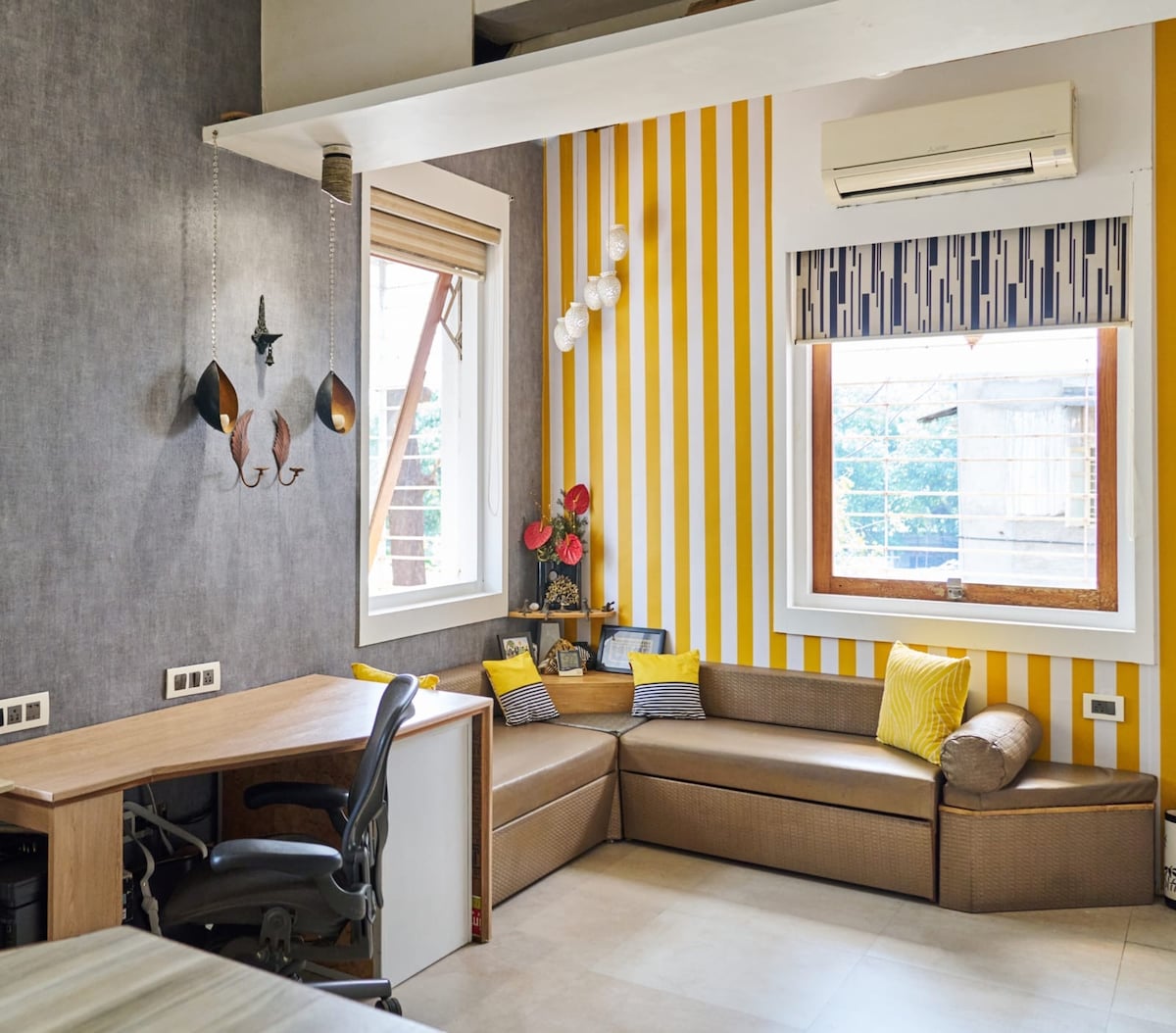 Bright & spacious 1BHK apartment with high ceilings, tall European-style windows, a fully equipped kitchen & 2 bath. Steps from Farmer’s Café,Linking Road, & auto-rickshaws — in one of India’s coolest neighbourhoods. • 1st floor flat • African themed interiors • 1 spacious bedroom with 2 bathrooms • Balcony • Split AC in living room & bedroom • 43" Smart TV • Hi-speed Wi-Fi • Airport ride, meals & other services avail