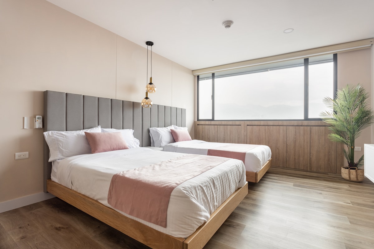 Moderna suite completamente amueblada, cocina, baño privado, 1 cama queen y un sofá cama, 500 MB de internet, aire acondicionado, escritorio, comedor y espectacular vista a la ciudad. El edificio está ubicado en el mejor barrio de Medellín, El Poblado, cerca de la Universidad EAFIT, la Milla de Oro, centros comerciales, supermercados, restaurantes y la estación Aguacatala del metro. Cuenta con zona de coworking, café, gimnasio, minimercado, spa y vigilancia las 24 horas.