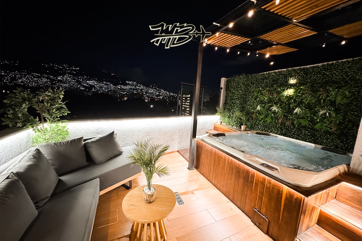 山顶别墅,美景,麦德林和按摩浴缸