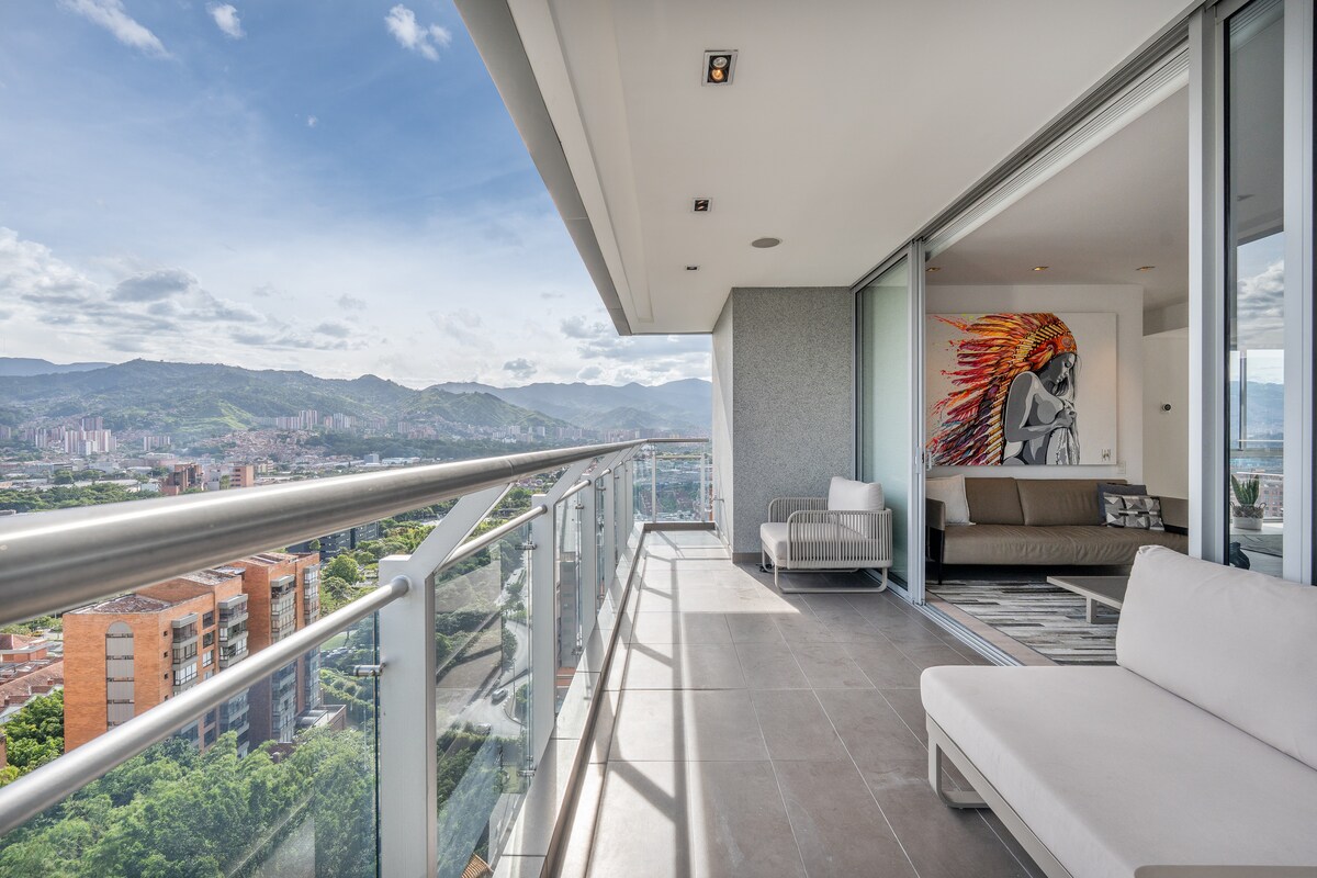 [C] Poblado Heights|19th FL View|AC|Spa|Sauna