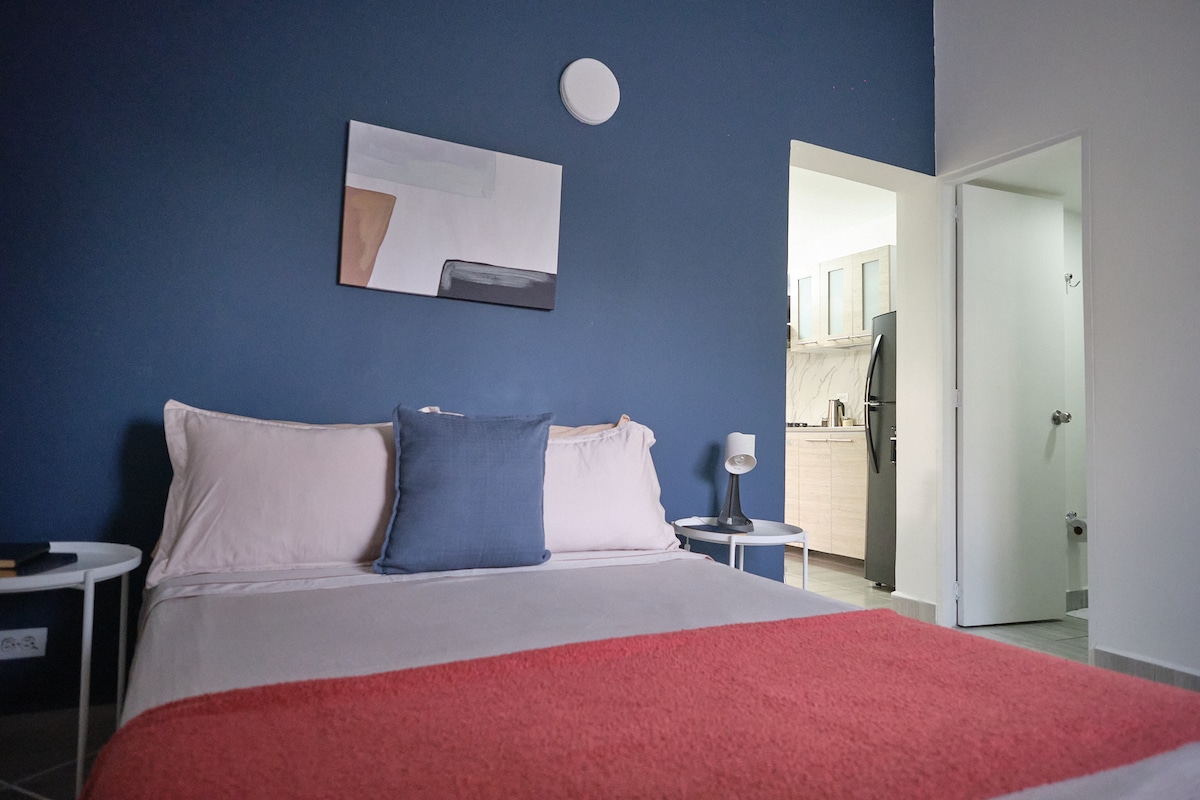 Relax in this elegant, modern apartment in the heart of Manila – El Poblado, just minutes from Provenza, Parque Lleras, and top medical centers such as Clínica Medellín, Clínica Las Vegas, and Clínica El Rosario. ✔Enjoy a king-size bed with premium linens, ✔Stylish bathroom with walk-in shower, ✔Smart TV, ✔High-speed fiber Wi-Fi ✔Fully equipped kitchen. ✔Unwind on your private balcony after exploring the city. ✔Fan ✔ Hot Water ✨Perfect for short stays, business trips, or recovery stays.