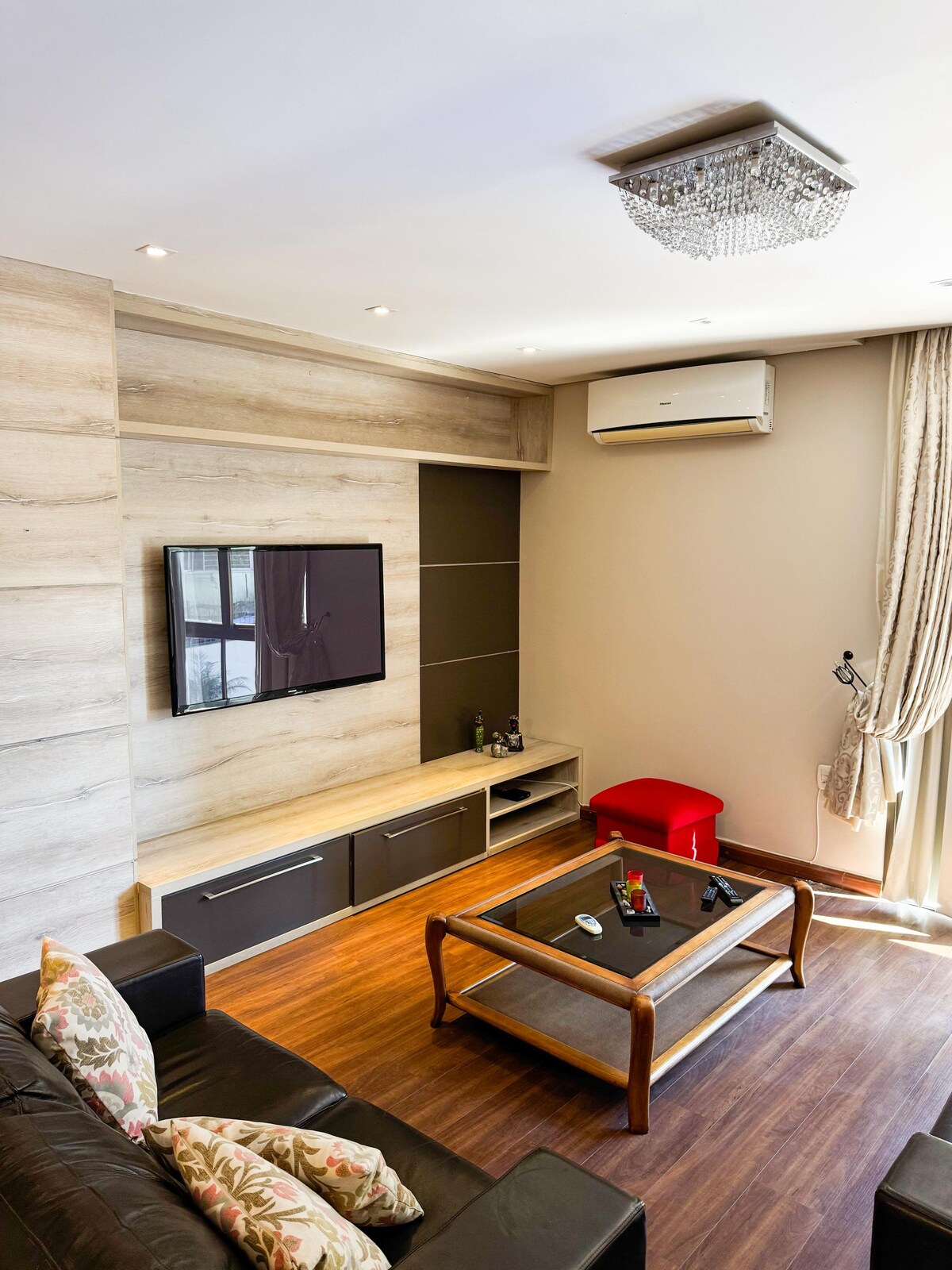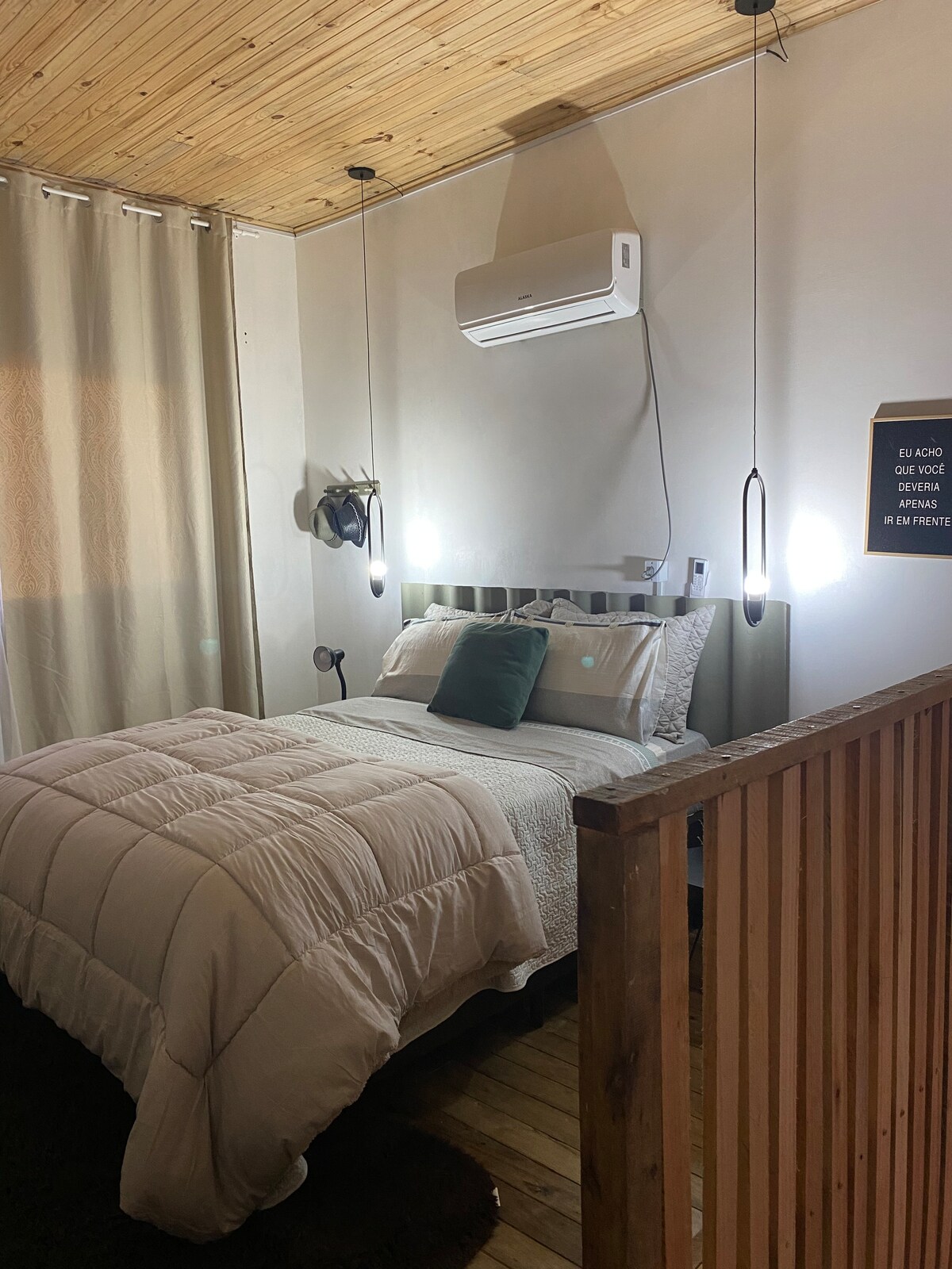 Loft aconchegante e bem localizado, perfeito para quem valoriza praticidade e conforto. Ideal para casais, viajantes individuais ou pequenas famílias(até 3 adultos e 1 criança), o loft é PEQUENO , conta com uma cozinha equipada, cama casal confortável (ar-condicionado no quarto), sofá cama, cama solteiro e uma decoração moderna. A localização é um destaque, próximo à Vila Militar, Shopping Sineriz, posto de imigração, supermercado e farmácias.