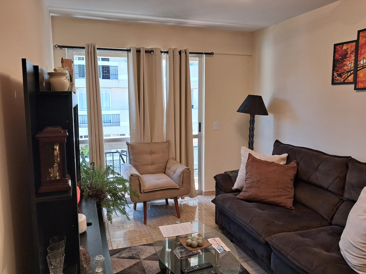 Apartamento simples, acolhedor, e iluminado que convida a leitura e ao relaxamento. Excelente localização central em bairro tranquilo e seguro. Perto tanto das universidades URGS, Ifsul e UNIPAMPA como do shopping Ziñeriz, este ap. é ideal tanto para professores ou estudantes universitários como para turistas de compras nos Free Shops. Entrada para carro privativa. Este apartamento e gerenciado pelos nossos co-anfitrões Silvia e Jospeh, que moram na residência ao lado.