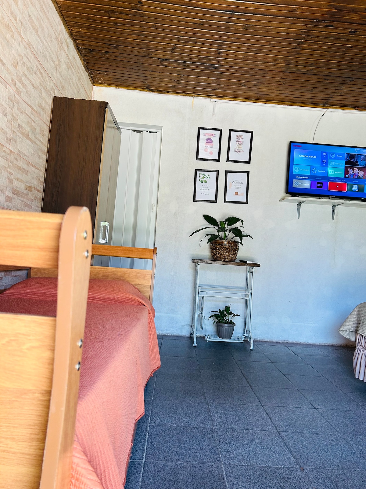 um quarto espaçoso com todo cuidado e conforto para os hóspedes se sentirem em casa , com uma ótima localização central com fácil acesso, lugar muito tranquilo e seguro podendo deixar seu carro no local. O quarto disponibiliza wi-fi , Frigobar, Jarra elétrica, Microondas, secador, ar condicionado, Tv 32" e roupa de cama e banho, tudo impecável!