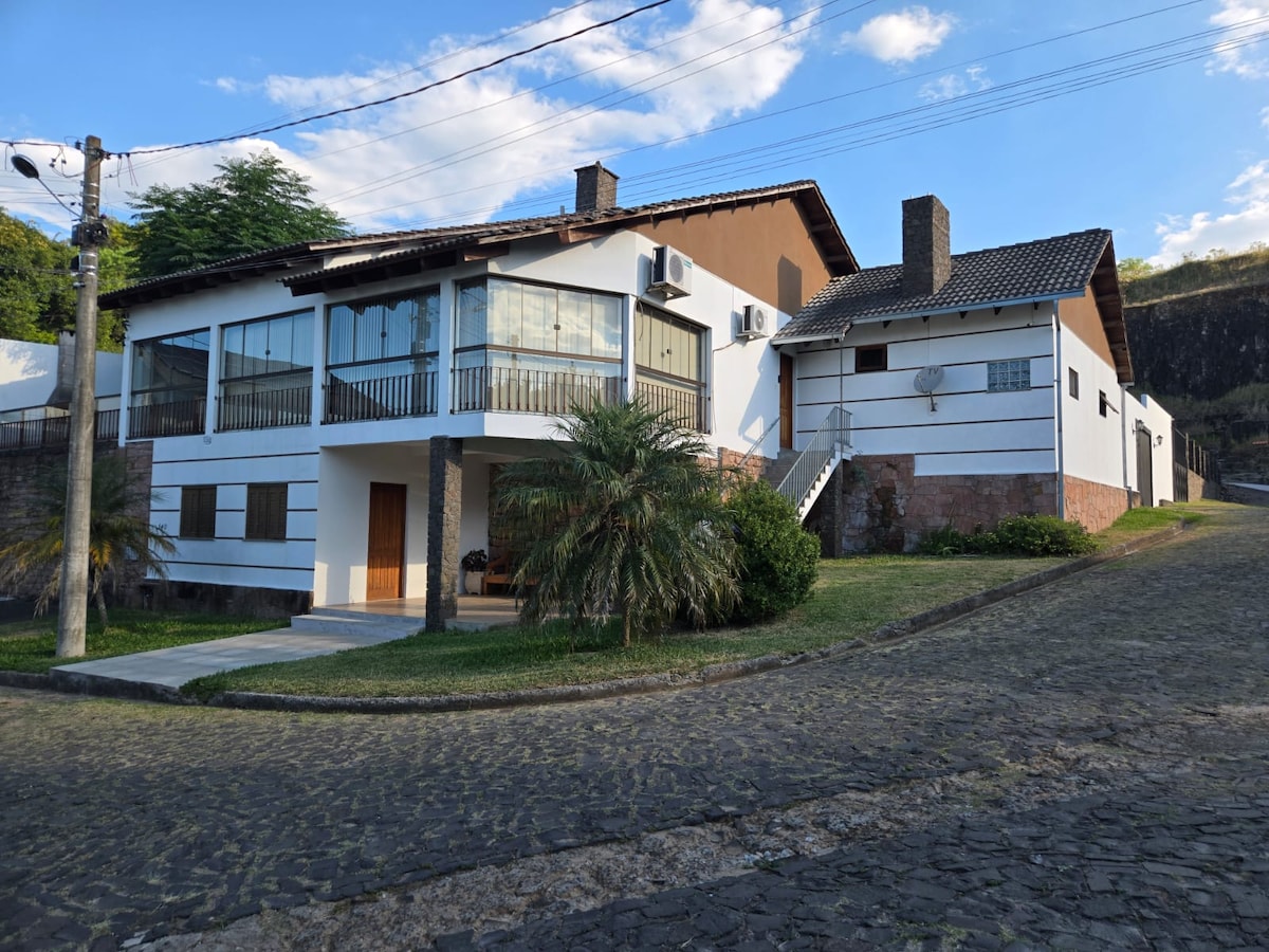 PET FRENDLY🐾 Ampla casa ideal para quem busca a tranquilidade do campo com a facilidade de estar há apenas 5km do centro. ●Pode acomodar mais hóspedes! confirme ANTES de reservar ! Você conta com uma sala com sofá-cama, 1 quarto c/cama de casal+cama de solteiro,um cômodo com 1 cama de solteiro, 1 banheiro e cozinha completa. SEU CARRO fica seguro em vaga privativa. * várias vagas disponíveis* O PÁTIO, também privativo, convida p aquele chimarrao no fim de tarde ou aquele churrasco especial.