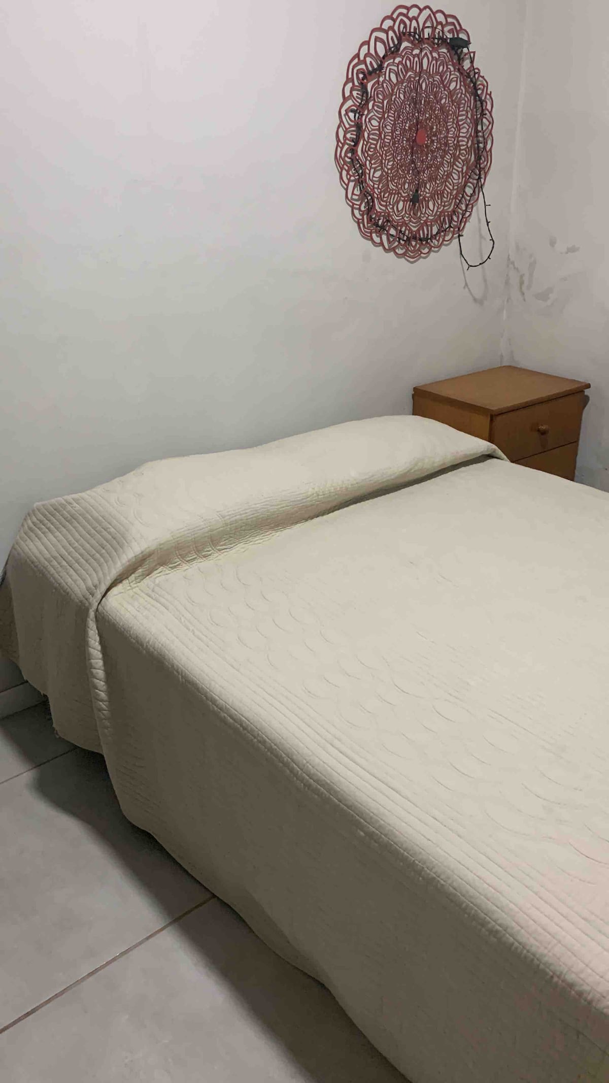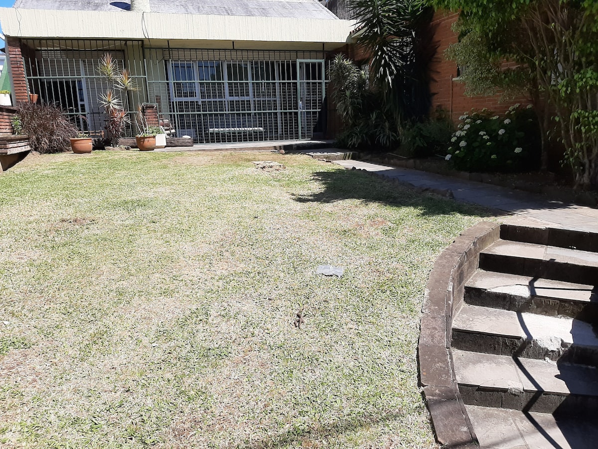 Nuestra casa es un lugar, funcional con luz natural, perfecto para una estancia cómoda. Cuenta con dos cuartos y dos baños, ideal para grupos pequeños o familias. Dispone de un patio con césped, donde podrás relajarte al aire libre. La ubicación es excelente, ya que se encuentra a tres cuadras de la avenida principal de Rivera y a tres de la línea divisoria, con fácil acceso a todos los servicios y comodidades de la zona. Internet a través de celular para compartir datos.