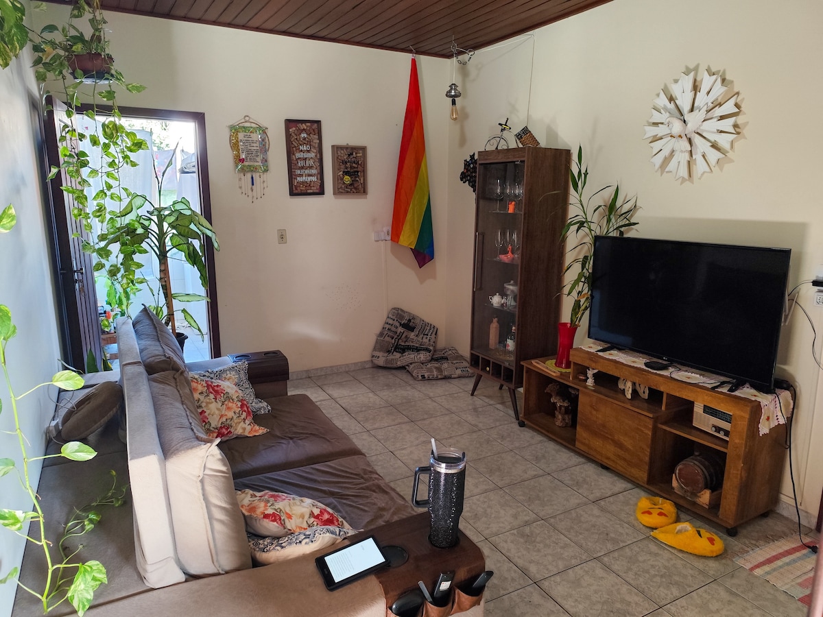 Casa super iluminada; ótimo lugar com muito espaço para confraternizar ou descansar se está de viagem, a casa é bem espaçosa comporta família grande se for caso, com uma área espetacular para churrasco, com sinuca e mesas de madeira… em caso de festas consultar a taxa a anfitriã e ter a autorização da a mesma.A casa possui 4 quartos , sendo uma suíte. Sala de tv no 2o pavimento e sala de estar e jantar e cozinha no 1o pavimento e 1 quarto. Área externa com 2 mesas grandes, churrasqueira e sinuca