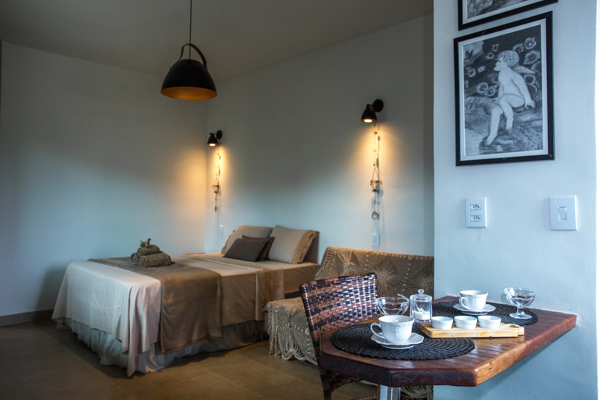 Relaxe e se conecte com a natureza nesse lindo loft na Lapinha da Serra. O Loft Mandacaru une conforto e privacidade no vilarejo mais charmoso de Minas. A 900m da Igrejinha e do centro comercial, o loft está perto o suficiente pra ir apé para as cachoeiras e longe o suficiente para ouvir apenas os sons dos pássaros. A casa é toda equipada, contando com hidro, uma cama queen e um colchão de apoio. Ideal para casais com um filho/a ou 3 amigos/as. Pet friendly. Incluso um passeio de caiaque.