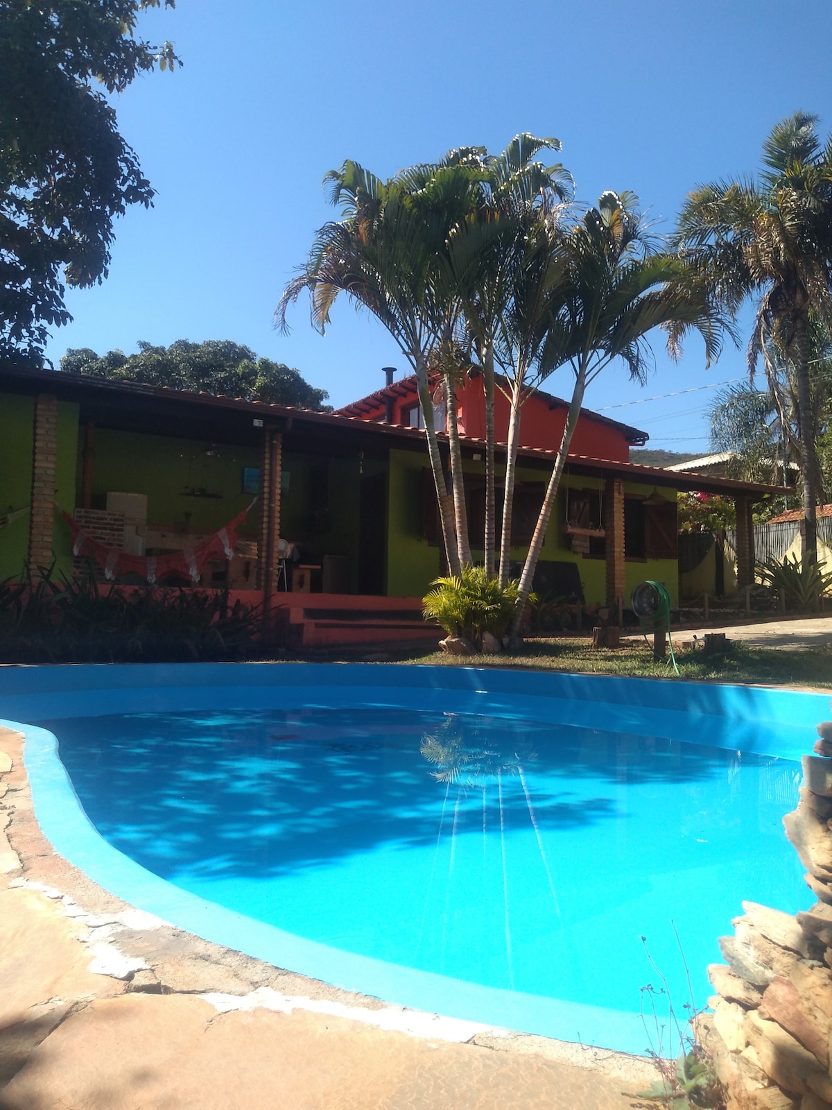 A casa é simples, rustica, tipo roça, com um riacho que passa ao lado e forma piscinas naturais de uso exclusivo dos hóspedes; Pode ser reservada por um casal, uma família, varios casais ou grupo amigos e familiares; a utilização da casa e da area de lazer é exclusivo do locatário Churrasqueira externa, cozinha com fogão à lenha e gás; 5 quartos, sendo 4 suítes com cama de casal e 1 quarto com beliches. O mobiliário é simples e banheiros básicos