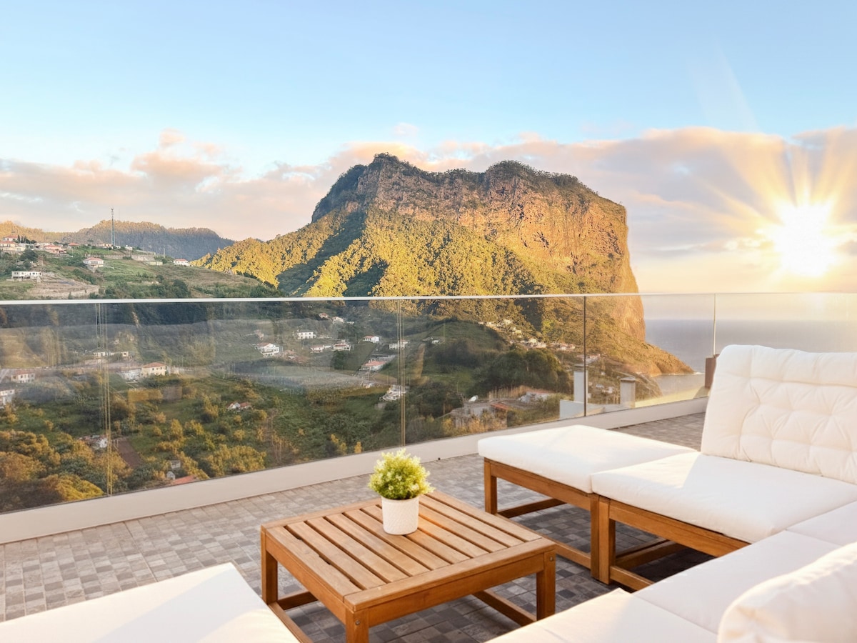 A modern and cosy apartment, close to the mountains and the sea, in the picturesque village of Ponta Delgada in Madeira Island. Perfect for a relaxing holiday or for working peacefully outdoors, ready to accommodate a family of 4 or two couples. Ideal location to explore the North Coast of the island but also at a short drive from the South Coast. On your return, at the end of the day, the property's refreshing swimming pool is waiting to help you recover.