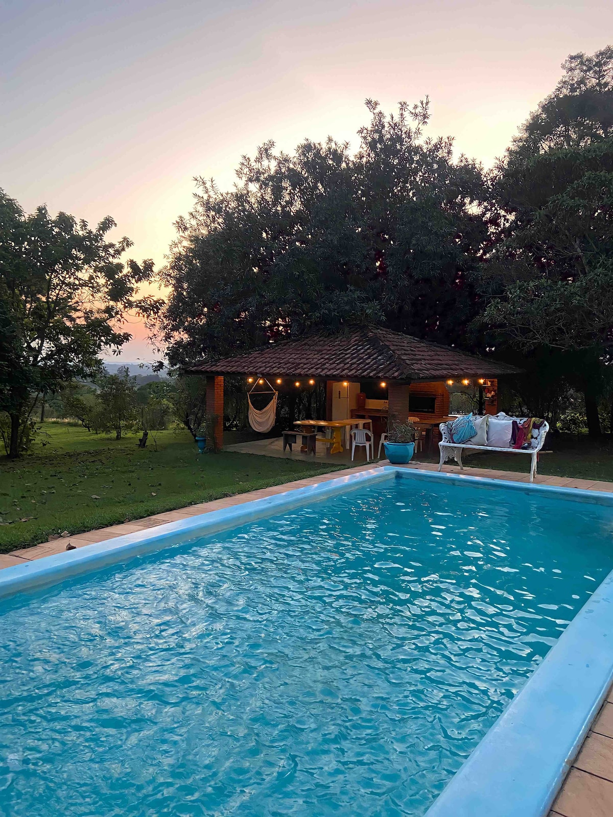 Chácara inteira , 1 quarto , 2 banheiros, sala espaçosa com Tv, wi-fi que permite acomodações dos colchões extras. Área de churrasqueira com forno e fogão a lenha , geladeira e utensílios de cozinha. Piscina , tanque para pesca. Pomar com árvores frutíferas . Garagem coberta para 1 veículo e espaço interno para vários veículos. Disponível Carnaval 14 a 17/02 mínimo de 4 hospedes Aberto para negociar! Desconto para grupo maior.