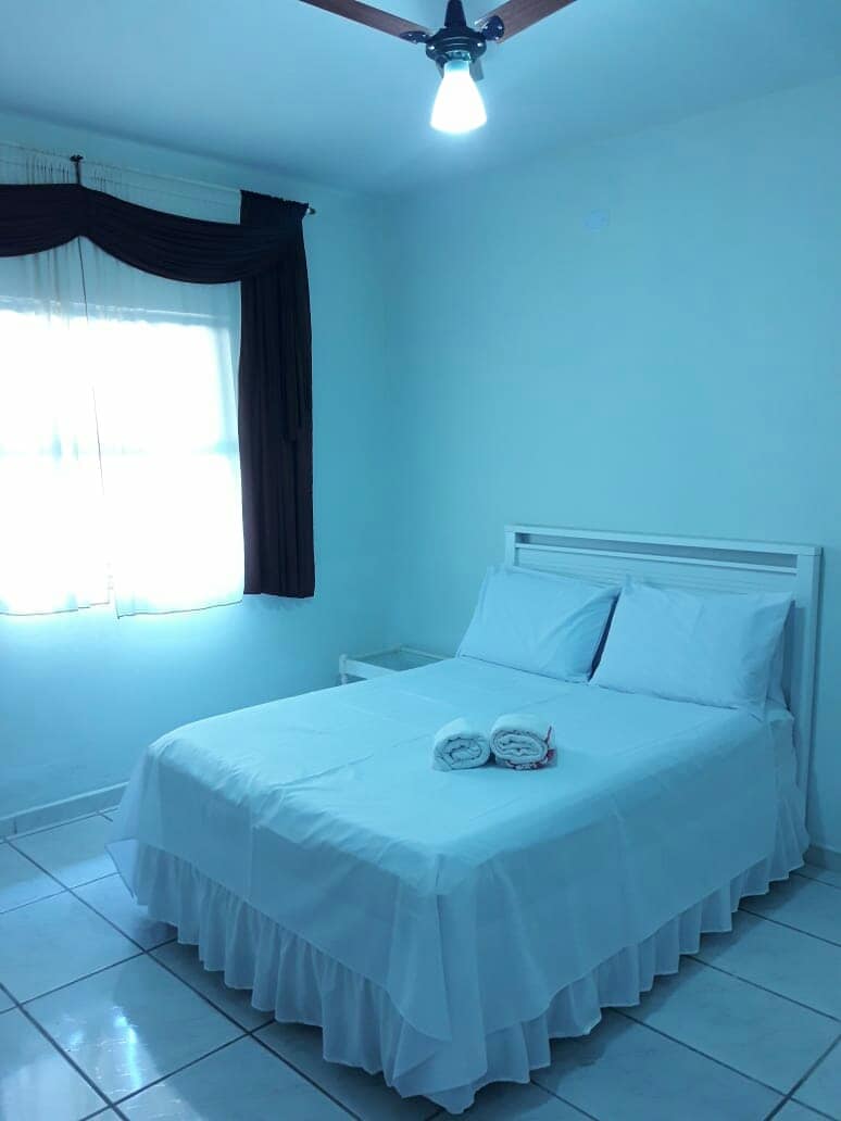 Relaxe com sua família nesta casa tranquila e completa! A apenas 650m da praça principal, você estará perto de tudo: mercados, farmácias e docerias. O que oferecemos: Wi-Fi, Ar-condicionado e Smart TV. Cozinha equipada (micro-ondas, cafeteira) e lavanderia. Cama box + sofá-cama de casal. Enxoval de cama e banho incluso. Jardim e garagem coberta. Obs: O imóvel é um sobrado; no andar superior funciona uma clínica de fisioterapia do meu filho atende em horários específicos.