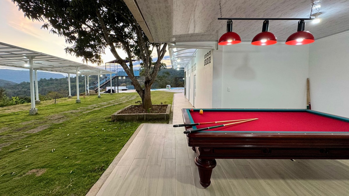 ¡Queremos ser tus anfitriones en Villa Mariham Estamos a tan solo 10 min de San Gil y a 35 minutos a Barichara. Escápate a esta casa privada con cabaña adicional, ideal para relajarte con toda tu familia. Cuenta con 5 hab., 7 baños, cocina integral full equipada, internet y zona de parqueo. Disfruta de su Piscina para adultos y niños, Jacuzzi, Bbq, mesa de billar. Perfecta para familias que buscan desconectarse y crear momentos inolvidables. No lo pienses más y reserva con nosotros.