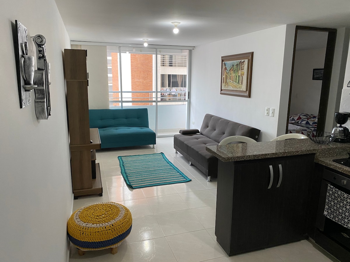 - Comodo apto studio 45 metros. - Habitación grande, ventana al,patio principal del condominio. - Cama grande, Baño completo, agua caliente ducha, ventana al vacio. - Cama sencilla, - Sofa cama grande en sala. - Sala amoblada, sillas en fique fibra artesanal. - Comedor para 4 comensales. - Cocinas equipada con Horno utensilios, cafetera, licuadora. - Zona de Rojas Lavadora y lavadero, Ventanal grande al vacio del condo. - Parqueadero Privado cubierto para un coche. - piscina chorros