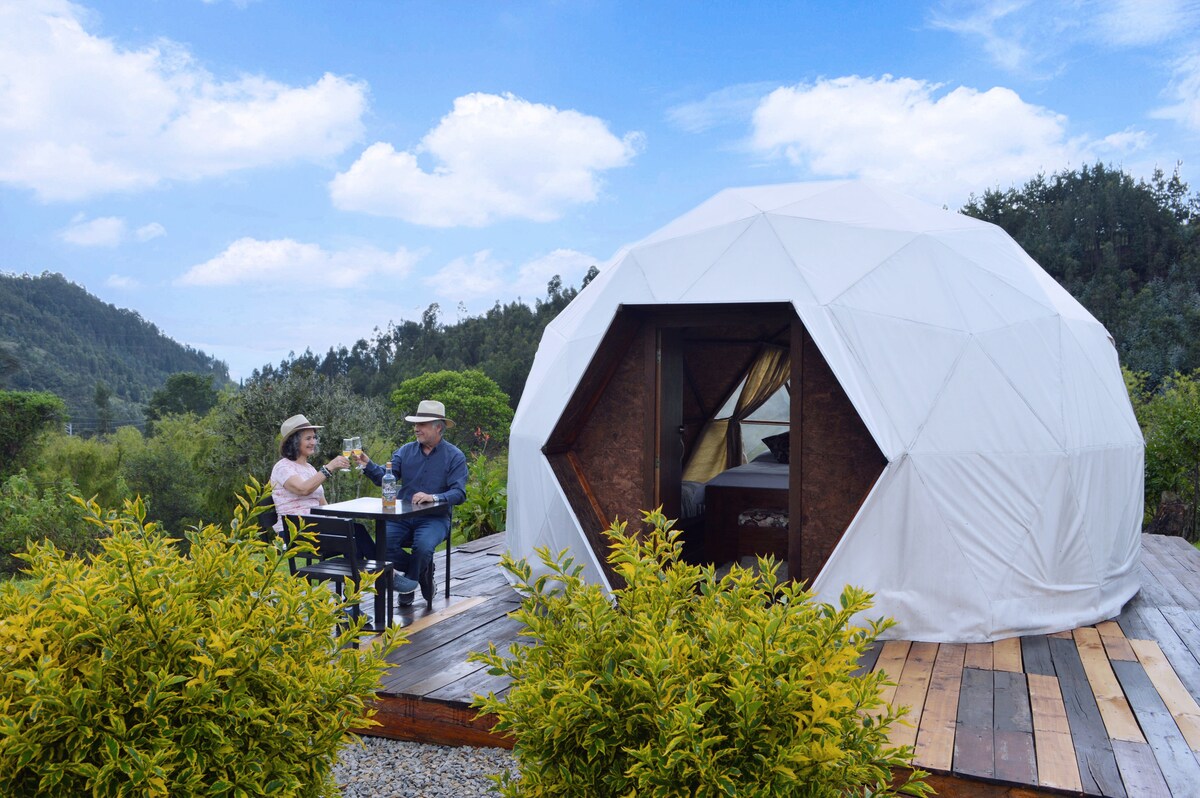 Rest in a cozy dome just 5 minutes from the main park. Surrounded by gardens and a small orchard, this space offers tranquility and Wi-Fi, ideal for couples or small families. Enjoy nearby activities: a zoo with extreme sports, hiking, the Tota Lagoon with its aquatic charm, and the region's traditional cuisine restaurants. Accessible by public transportation, and a private parking available. Perfect for exploring Boyacá and disconnecting in a unique natural setting.