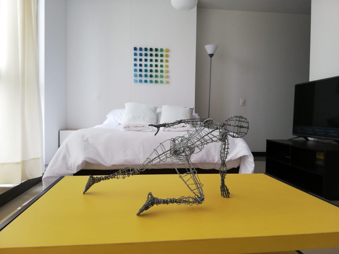 Disfruta del buen clima y comodidad que ofrece el alojamiento full equipado con aire acondicionado y zonas verdes que harán de tu estancia una experiencia agradable. Aquí cuentas con Netflix y Disney para disfrutar. El apartaestudio es apropiado para viajes de turismo y negocios, dada su ubicación estratégica en la ciudad, con fácil acceso a supermercados, restaurantes, parques, centros comerciales, universidades , clínicas, avenidas principales y transporte público.