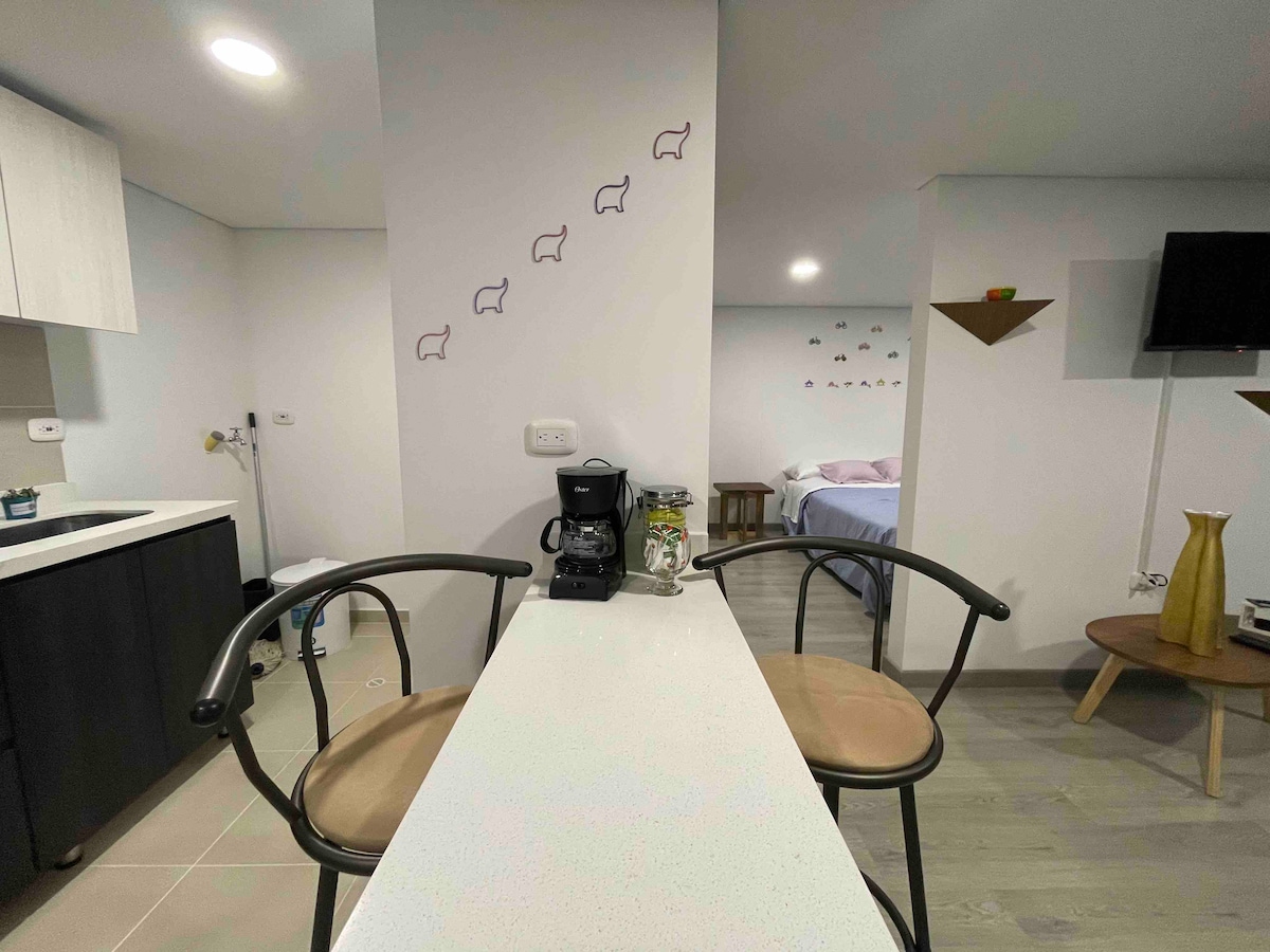 Bienvenidos a nuestro acogedor apartaestudio céntrico, ideal para quienes buscan comodidad y fácil acceso a puntos clave de la ciudad. Cuenta con cocina equipada, sala con smart TV, comedor, lavadora, secadora y nevera. La habitación ofrece una cama queen y un baño cómodo. A poca distancia de Farmatodo, supermercado Más x Menos, La Panamericana, iglesia San Pedro y clínica San Luis. Perfecto para estancias cortas o largas, con todas las comodidades para una estancia placentera.