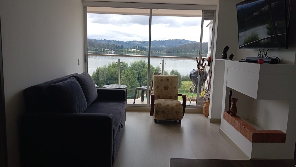 在Paipa的公寓休息,欣赏湖景,享用冰啤酒