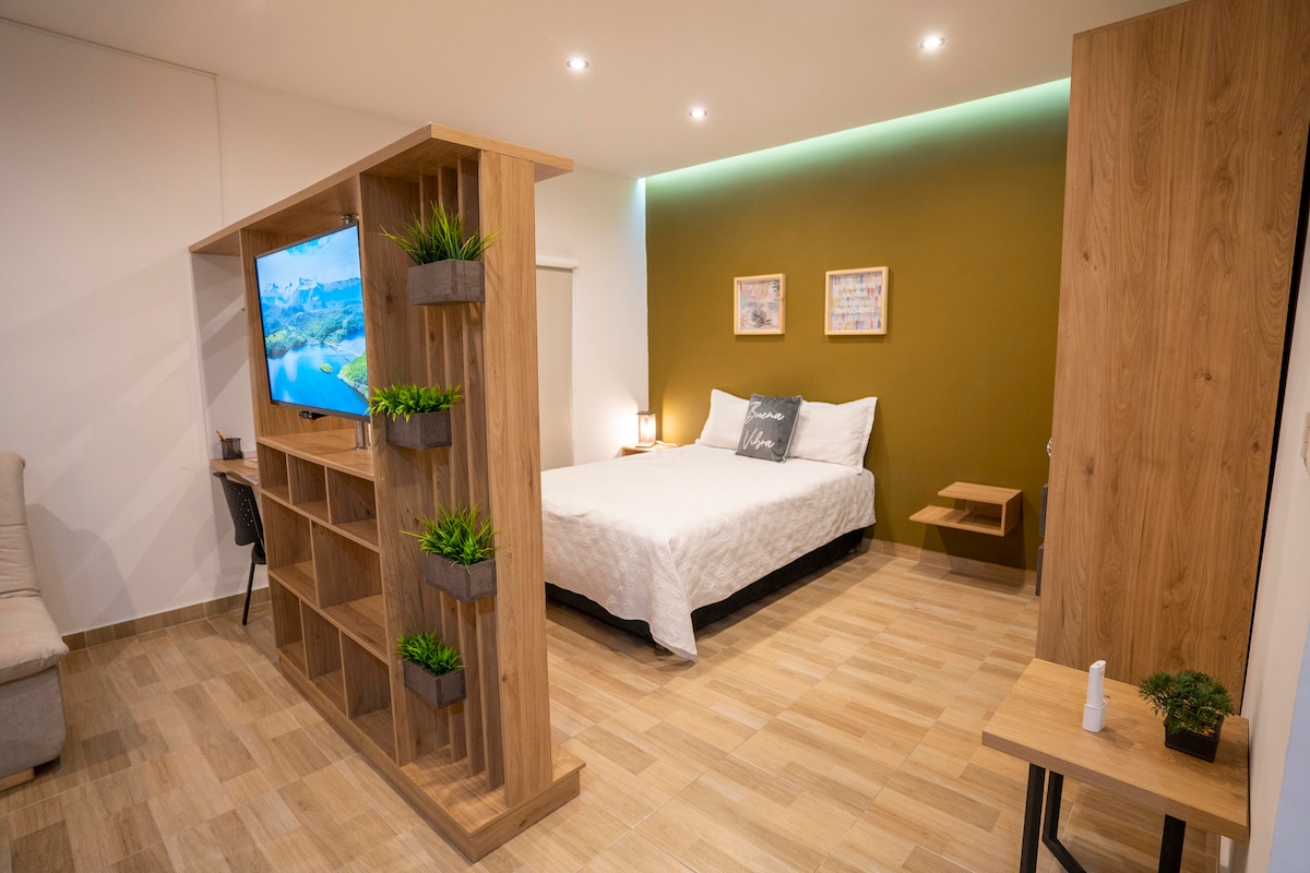 Tendras experiencia de alojamiento única en una de las zonas más céntricas y convenientes de Bucaramanga. Ideal para viajeros de negocios, parejas o turistas que deseen estar cerca de todo: La zona financiera y empresarial de Bucaramanga, Centros comerciales como, Megamall y Cabecera, Clínicas y hospitales, Restaurantes, cafés y supermercados Fácil acceso a transporte público y taxis Nos esmeramos en ofrecer un espacio limpio, tranquilo y funcional para que tu estadía sea inolvidable.