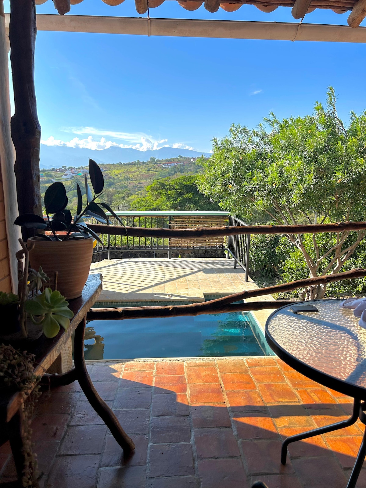 A five-star rated breathtaking place just outside the colonial village Barichara. Well connected by car or tuktuk (10 minutes) or a 45 min hike to the centre of Barichara. This one of a kind house is newly built, using a blend of traditional Colombian techniques (tapia pisada) and Dutch design. This results in a very comfortable and pleasant atmosphere. It offers two separate private bed- and bathrooms, whereas the living area is semi-open offering a stunning view over the valley and the Andes.