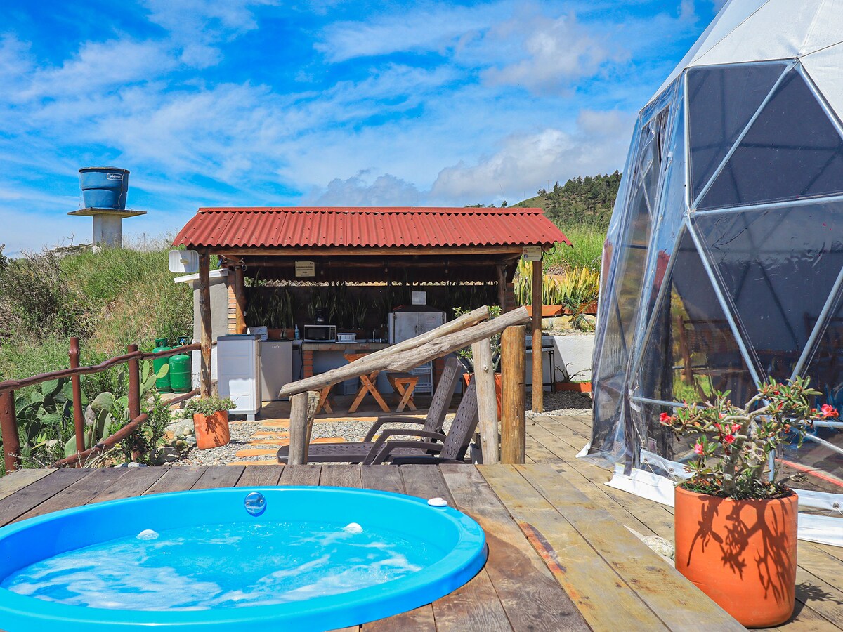 Exclusivo Glamping con una privilegiada vista del majestuoso Cañon del Chicamocha. Cuenta con todas las comodidades para disfrutar de un buen rato acompañado de un paisaje único y un clima cálido en el día y frío en la noche. Nos encontramos en una zona rural, por tanto NO HAY TRANSPORTE PUBLICO DIRECTO HASTA LA FINCA