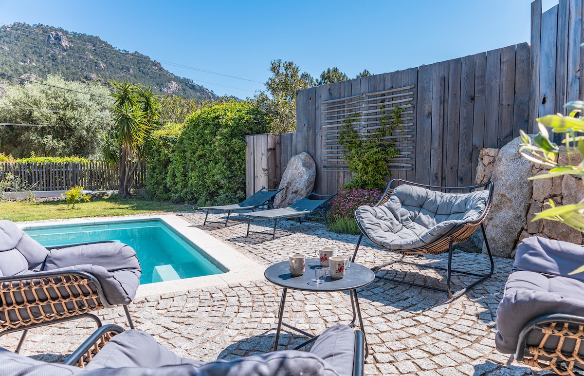 小屋1 海景、游泳池、距离海滩5分钟、阿雅克肖附近