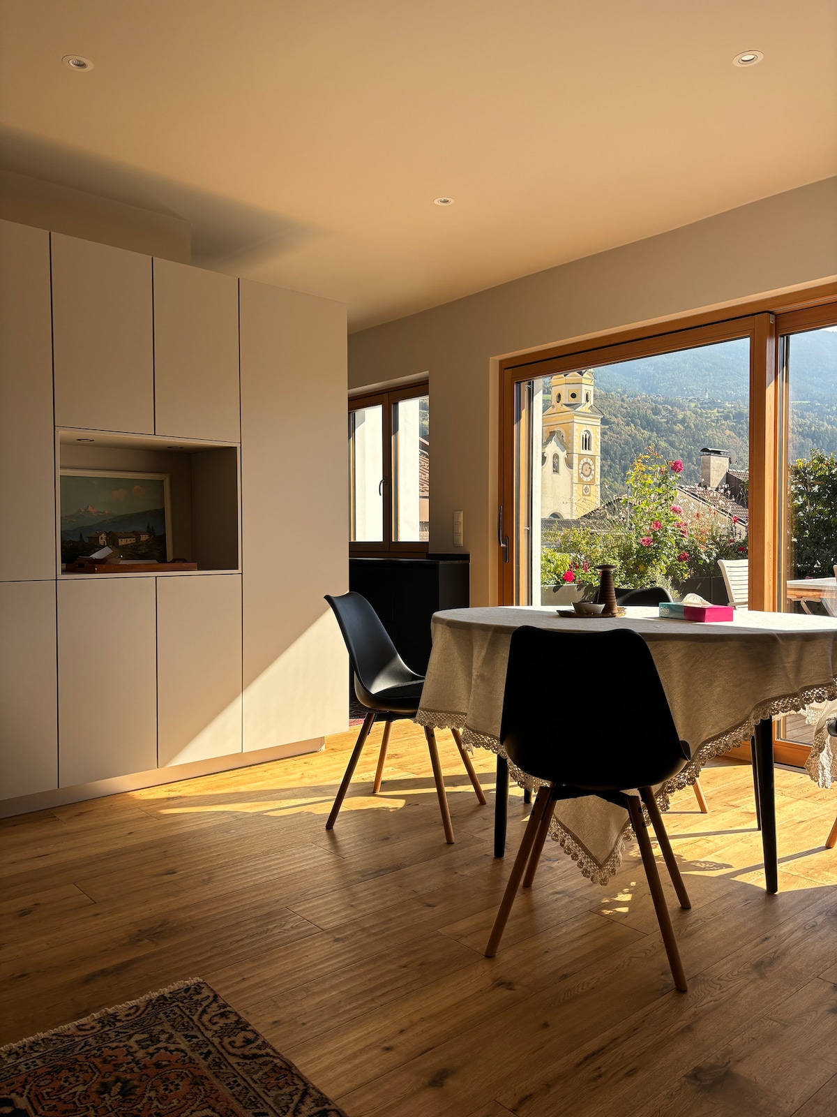 NEW: This top-floor apartment, featuring two terraces and large sliding windows, is located within the historic old town. It offers stunning views to both the north and south. Lovingly and extensively renovated three years ago, it now serves as our vacation home. A perfect retreat for enjoying Brixen and its surroundings and equally ideal for simply staying in: contemplating, reading, cooking, or just soaking in the beautiful views.